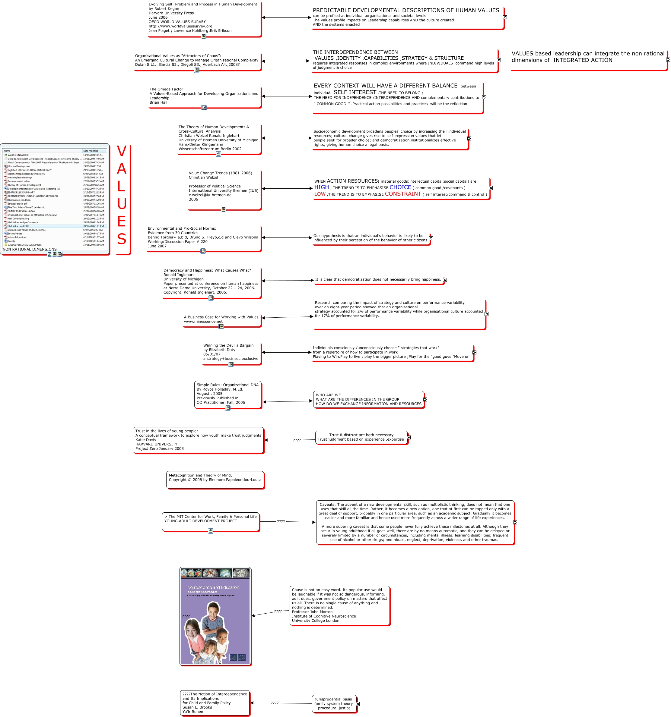 This Concept Map, created with IHMC CmapTools, has information related to: VALUES UNPACKED, A Business Case for Working with Values www.minessence.net ???? ????, > The MIT Center for Work, Family & Personal Life YOUNG ADULT DEVELOPMENT PROJECT ???? Caveats: The advent of a new developmental skill, such as multiplistic thinking, does not mean that one uses that skill all the time. Rather, it becomes a new option, one that at first can be tapped only with a great deal of support, probably in one particular area, such as an academic subject. Gradually it becomes easier and more familiar and hence used more frequently across a wider range of life experiences. A more sobering caveat is that some people never fully achieve these milestones at all. Although they occur in young adulthood if all goes well, there are by no means automatic, and they can be delayed or severely limited by a number of circumstances, including mental illness; learning disabilities; frequent use of alcohol or other drugs; and abuse, neglect, deprivation, violence, and other traumas., CONSTRAINT Emphasize RELIGIOSITY Emphasize PATRIOTISM Respect AUTHORITY Teach OBEDIENCE Emphasize traditional FAMLISM, Emphasize civil and political FREEDOM Support and practice public EXPRESSION Tolerate NONCONFORMITY Feel SELF-DIRECTION Sense HUMAN TRUST People tend to value the choices they are capable to practice. Emphasize RELIGIOSITY Emphasize PATRIOTISM Respect AUTHORITY Teach OBEDIENCE Emphasize traditional FAMLISM, Cause is not an easy word. Its popular use would be laughable if it was not so dangerous, informing, as it does, government policy on matters that affect us all. There is no single cause of anything and nothing is determined. Professor John Morton Institute of Cognitive Neuroscience University College London ???? ????, Evolving Self: Problem and Process in Human Development by Robert Kegan Harvard University Press June 2006 OECD WORLD VALUES SURVEY http://www.worldvaluessurvey.org Jean Piaget ; Lawrence Kohlberg;Erik Erikson ???? PERSONAL DEVELOPMENT In relationship, conflict, and leadership we set aside our illusion of knowing, rightness, and completeness. We are no longer trying to enrol others into our vision or way of thinking but see ourselves as the keeper of a context where dialogue can happen. We create opportunities for dialogue where the "truth" can emerge and even then we do not accept it as truth, but merely our best approximation for the moment. We pursue our visions and plans knowing that they are incomplete and stay open to their further evolution. In relationships, we surrender the notion of two complete selves having a relationship and refuse to see the self or the other as a single whole. In relationship now, both experience their multipleness. We engage in dialogue across differences to find understanding, accommodation, and cooperation. We can sustain differences within a broader context of respect for the multipleness of the whole. Differences are not to be eliminated, but understood as an opposite tendency within oneself Discord is seen as reflecting some inner intolerance within ourselves that is manifesting in the collective. In this time of opportunity and peril mentioned above, we think that the move to Level 5 is necessary if the future is to be a time of opportunity not peril Conflict is used for the transformation of all parties., Winning the Devil's Bargain by Elizabeth Doty 05/01/07 a strategy+business exclusive ???? Playing to Win. Skeptical about grandiose aspirations or altruistic ideas, especially in the workplace, they put their faith in drive, intelligence, and free markets to propel them to the top. Theytook on challenges just to see if they could, putting work at the center of their lives and deferring their personal dreams and ideals until they had sufficient power and wealth to command respect., jurisprudential basis family system theory procedural justice ???? ????The Notion of Interdependence and Its Implications for Child and Family Policy Susan L. Brooks Ya’ir Ronen, Democracy and Happiness: What Causes What? Ronald Inglehart University of Michigan Paper presented at conference on human happiness at Notre Dame University, October 22 – 24, 2006. Copyright, Ronald Inglehart, 2006. But it is clear that democratization does not necessarily bring happiness. 4 CORRELATION SATISFACTION & DEMOCRACY 1970/2005, The Theory of Human Development: A Cross-Cultural Analysis Christian Welzel Ronald Inglehart University of Bremen University of Michigan Hans-Dieter Klingemann Wissenschaftszentrum Berlin 2002 ???? Socioeconomic development broadens peoples’ choice by increasing their individual resources; cultural change gives rise to self-expression values that let people seek for broader choice; and democratization institutionalizes effective rights, giving human choice a legal basis., The Omega Factor: A Values-Based Approach for Developing Organizations and Leadership Brian Hall ???? ????, Trust & distrust are both necessary Trust judgment based on experience ,expertise ???? Trust in the lives of young people: A conceptual framework to explore how youth make trust judgments Katie Davis HARVARD UNIVERSITY Project Zero January 2008, Emphasize civil and political FREEDOM Support and practice public EXPRESSION Tolerate NONCONFORMITY Feel SELF-DIRECTION Sense HUMAN TRUST People tend to value the choices they are capable to practice. Value Change Trends (1981-2006) Christian Welzel Professor of Political Science International University Bremen (IUB) c.welzel@iu-bremen.de 2006, Environmental and Pro-Social Norms: Evidence from 30 Countries Benno Torgler∗ a,b,d, Bruno S. Freyb,c,d and Clevo Wilsona Working/Discussion Paper # 220 June 2007 ???? empirical and experimental findings indicate that deterrence models predict too little compliance. People are more compliant than these models predict. The level of compliance observed cannot be explained by the amount of risk aversion involved. The li