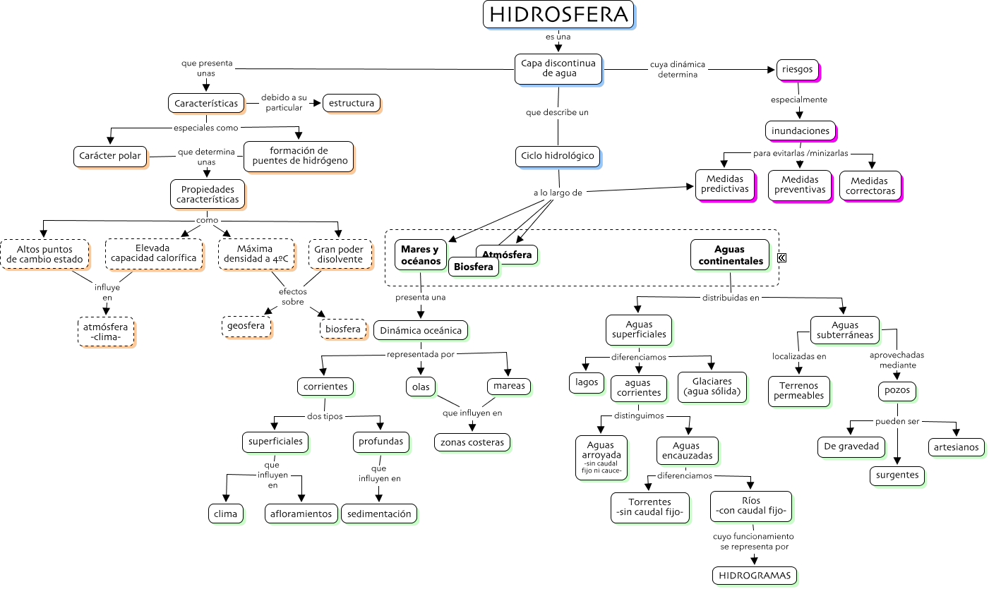 Este Cmap, tiene información relacionada con: Tema 12, Aguas subterráneas aprovechadas mediante pozos, Gran poder disolvente efectos sobre biosfera, Máxima densidad a 4ºC efectos sobre geosfera, Aguas continentales distribuidas en Aguas subterráneas, Ciclo hidrológico a lo largo de Atmósfera, inundaciones para evitarlas /minizarlas Medidas predictivas, Capa discontinua de agua que describe un Ciclo hidrológico, superficiales que influyen en clima, Ciclo hidrológico a lo largo de Biosfera, olas que influyen en zonas costeras, Características debido a su particular estructura, Aguas encauzadas diferenciamos Ríos -con caudal fijo-, pozos pueden ser surgentes, Propiedades características como Máxima densidad a 4ºC, Ciclo hidrológico a lo largo de Medidas predictivas, superficiales que influyen en afloramientos, aguas corrientes distinguimos Aguas encauzadas, aguas corrientes distinguimos Aguas arroyada -sin caudal fijo ni cauce-, Propiedades características como Altos puntos de cambio estado, Dinámica oceánica representada por corrientes