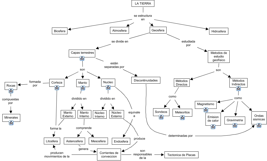 Este Cmap, tiene información relacionada con: tema 02.1, Geosfera estudiada por Metodos de estudio geofísico, Corteza forma la Litosfera, Manto Externo forma la Litosfera, Nucleo dividido en Núcleo Externo, Rocas compuestas por Minerales, Geosfera se divide en Capas terrestres, Corteza formada por Rocas, Métodos Indirectos como Ondas sismicas, Nucleo equivale a Endosfera, Discontinuidades determinadas por Ondas sismicas, Capas terrestres son Manto, Capas terrestres son Corteza, Núcleo Externo produce Corrientes de conveccion, Métodos Indirectos como Emision de calor, LA TIERRA se estructura en Geosfera, Corrientes de conveccion son responsables de la Tectonica de Placas, Métodos Directos como Meteoritos, Métodos Indirectos como Gravimetria, LA TIERRA se estructura en Biosfera, Corrientes de conveccion producen movimientos de la Litosfera