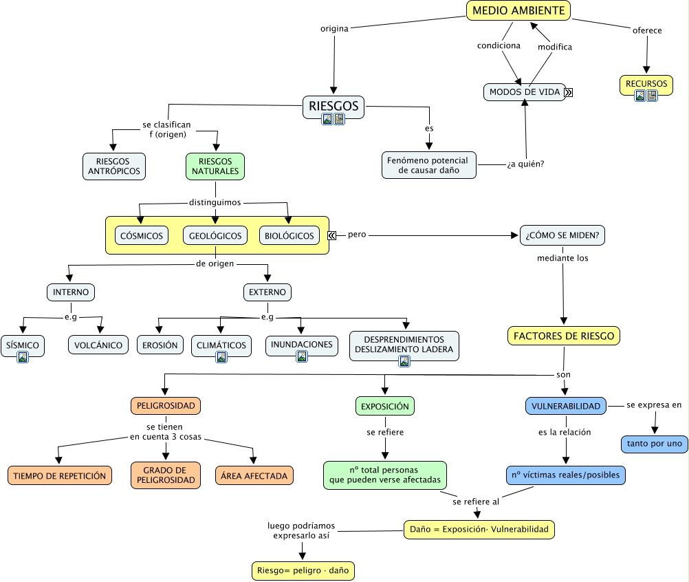 Este Cmap, tiene información relacionada con: 3 Riesgos derivados de la dinámica terrestre, INTERNO e.g VOLCÁNICO, RIESGOS se clasifican f (origen) RIESGOS ANTRÓPICOS, RIESGOS NATURALES distinguimos GEOLÓGICOS, EXTERNO e.g EROSIÓN, EXTERNO e.g DESPRENDIMIENTOS DESLIZAMIENTO LADERA, Daño = Exposición· Vulnerabilidad luego podríamos expresarlo así Riesgo= peligro · daño, FACTORES DE RIESGO son VULNERABILIDAD, EXPOSICIÓN se refiere nº total personas que pueden verse afectadas, RIESGOS NATURALES distinguimos CÓSMICOS, RIESGOS se clasifican f (origen) RIESGOS NATURALES, PELIGROSIDAD se tienen en cuenta 3 cosas TIEMPO DE REPETICIÓN, EXTERNO e.g CLIMÁTICOS, VULNERABILIDAD se expresa en tanto por uno, RIESGOS NATURALES distinguimos BIOLÓGICOS, Fenómeno potencial de causar daño ¿a quién? POBLACIÓN y ACTIVIDADES, POBLACIÓN y ACTIVIDADES desarrolla MODOS DE VIDA, FACTORES DE RIESGO son PELIGROSIDAD, MEDIO AMBIENTE origina RIESGOS, GEOLÓGICOS de origen INTERNO, nº víctimas reales/posibles se refiere al Daño = Exposición· Vulnerabilidad