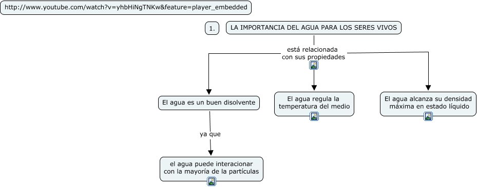 Este Cmap, tiene información relacionada con: Tema 6.1 La importancia del agua para los seres vivos, LA IMPORTANCIA DEL AGUA PARA LOS SERES VIVOS está relacionada con sus propiedades El agua es un buen disolvente, LA IMPORTANCIA DEL AGUA PARA LOS SERES VIVOS está relacionada con sus propiedades El agua alcanza su densidad máxima en estado líquido, LA IMPORTANCIA DEL AGUA PARA LOS SERES VIVOS está relacionada con sus propiedades El agua regula la temperatura del medio, El agua es un buen disolvente ya que el agua puede interacionar con la mayoría de la partículas