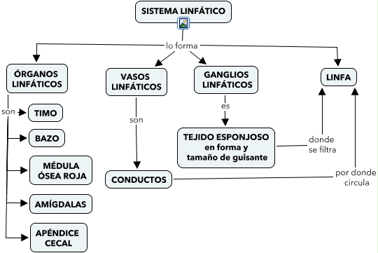 Este Cmap, tiene información relacionada con: 4 Las defensas del organismo (I) el sistema linfático, SISTEMA LINFÁTICO lo forma ÓRGANOS LINFÁTICOS, SISTEMA LINFÁTICO lo forma GANGLIOS LINFÁTICOS, CONDUCTOS por donde circula LINFA, SISTEMA LINFÁTICO lo forma VASOS LINFÁTICOS, ÓRGANOS LINFÁTICOS son TIMO, SISTEMA LINFÁTICO lo forma LINFA, VASOS LINFÁTICOS son CONDUCTOS, ÓRGANOS LINFÁTICOS son APÉNDICE CECAL, ÓRGANOS LINFÁTICOS son MÉDULA ÓSEA ROJA, GANGLIOS LINFÁTICOS es TEJIDO ESPONJOSO en forma y tamaño de guisante, ÓRGANOS LINFÁTICOS son BAZO, ÓRGANOS LINFÁTICOS son AMÍGDALAS, TEJIDO ESPONJOSO en forma y tamaño de guisante donde se filtra LINFA