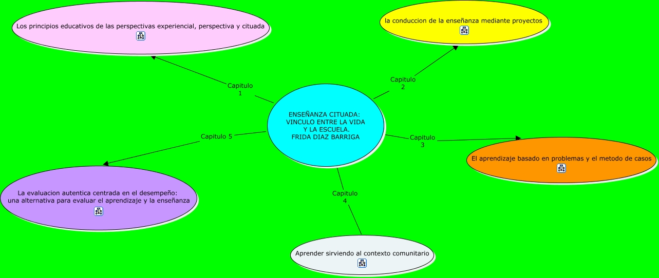 Este Cmap, tiene información relacionada con: hoja 1, ENSEÑANZA CITUADA: VINCULO ENTRE LA VIDA Y LA ESCUELA. FRIDA DIAZ BARRIGA Capitulo 1 Los principios educativos de las perspectivas experiencial, perspectiva y cituada, ENSEÑANZA CITUADA: VINCULO ENTRE LA VIDA Y LA ESCUELA. FRIDA DIAZ BARRIGA Capitulo 2 la conduccion de la enseñanza mediante proyectos, ENSEÑANZA CITUADA: VINCULO ENTRE LA VIDA Y LA ESCUELA. FRIDA DIAZ BARRIGA Capitulo 4 Aprender sirviendo al contexto comunitario, ENSEÑANZA CITUADA: VINCULO ENTRE LA VIDA Y LA ESCUELA. FRIDA DIAZ BARRIGA Capitulo 3 El aprendizaje basado en problemas y el metodo de casos, ENSEÑANZA CITUADA: VINCULO ENTRE LA VIDA Y LA ESCUELA. FRIDA DIAZ BARRIGA Capitulo 5 La evaluacion autentica centrada en el desempeño: una alternativa para evaluar el aprendizaje y la enseñanza