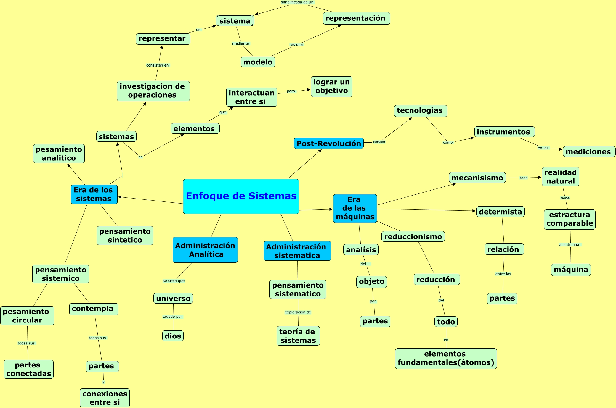 Este Cmap, tiene información relacionada con: mapa conceptual, contempla todas sus partes, pesamiento circular todas sus partes conectadas, Enfoque de Sistemas et Administración sistematica, tecnologias como instrumentos, instrumentos en las mediciones, relación entre las partes, pensamiento sistemico ???? pesamiento circular, todo en elementos fundamentales(átomos), Era de las máquinas ???? mecanisismo, Enfoque de Sistemas ???? Era de las máquinas, pensamiento sistematico exploracion de teoría de sistemas, elementos que interactuan entre si, Administración sistematica ???? pensamiento sistematico, Enfoque de Sistemas ???? Administración Analítica, sistema mediante modelo, partes y conexiones entre si, Era de las máquinas ???? determista, Era de las máquinas ???? reduccionismo, Era de los sistemas sistemas, reduccionismo ???? reducción