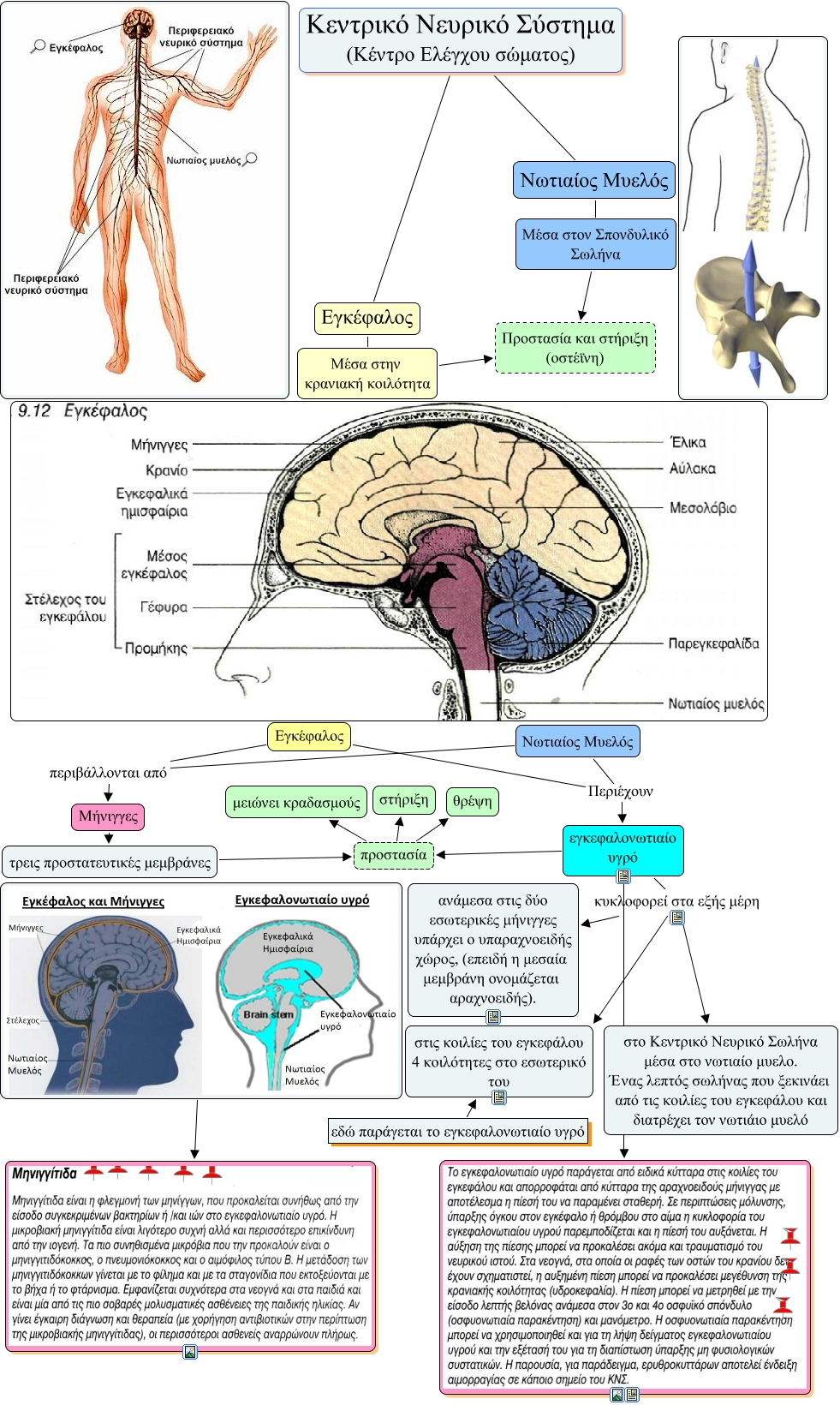 This Concept Map, created with IHMC CmapTools, has information related to: CNS, Νωτιαίος Μυελός περιβάλλονται από Μήνιγγες, προστασία στήριξη, προστασία θρέψη, εδώ παράγεται το εγκεφαλονωτιαίο υγρό στις κοιλίες του εγκεφάλου 4 κοιλότητες στο εσωτερικό του, εγκεφαλονωτιαίο υγρό κυκλοφορεί στα εξής μέρη στο Κεντρικό Νευρικό Σωλήνα μέσα στο νωτιαίο μυελο. Ένας λεπτός σωλήνας που ξεκινάει από τις κοιλίες του εγκεφάλου και διατρέχει τον νωτιάιο μυελό, εγκεφαλονωτιαίο υγρό κυκλοφορεί στα εξής μέρη στις κοιλίες του εγκεφάλου 4 κοιλότητες στο εσωτερικό του, εγκεφαλονωτιαίο υγρό, Μήνιγγες τρεις προστατευτικές μεμβράνες, Νωτιαίος Μυελός Μέσα στον Σπονδυλικό Σωλήνα,, Μέσα στην κρανιακή κοιλότητα Προστασία και στήριξη (οστέϊνη), Μέσα στον Σπονδυλικό Σωλήνα Προστασία και στήριξη (οστέϊνη), Εγκέφαλος Περιέχουν εγκεφαλονωτιαίο υγρό, Εγκέφαλος Μέσα στην κρανιακή κοιλότητα, Κεντρικό Νευρικό Σύστημα (Κέντρο Ελέγχου σώματος) Νωτιαίος Μυελός, εγκεφαλονωτιαίο υγρό κυκλοφορεί στα εξής μέρη ανάμεσα στις δύο εσωτερικές μήνιγγες υπάρχει ο υπαραχνοειδής χώρος, (επειδή η μεσαία μεμβράνη ονομάζεται αραχνοειδής)., τρεις προστατευτικές μεμβράνες προστασία, Εγκέφαλος περιβάλλονται από Μήνιγγες, Νωτιαίος Μυελός Περιέχουν εγκεφαλονωτιαίο υγρό, προστασία μειώνει κραδασμούς