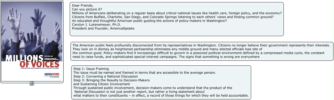 This Concept Map, created with IHMC CmapTools, has information related to: america speaks millions of voices