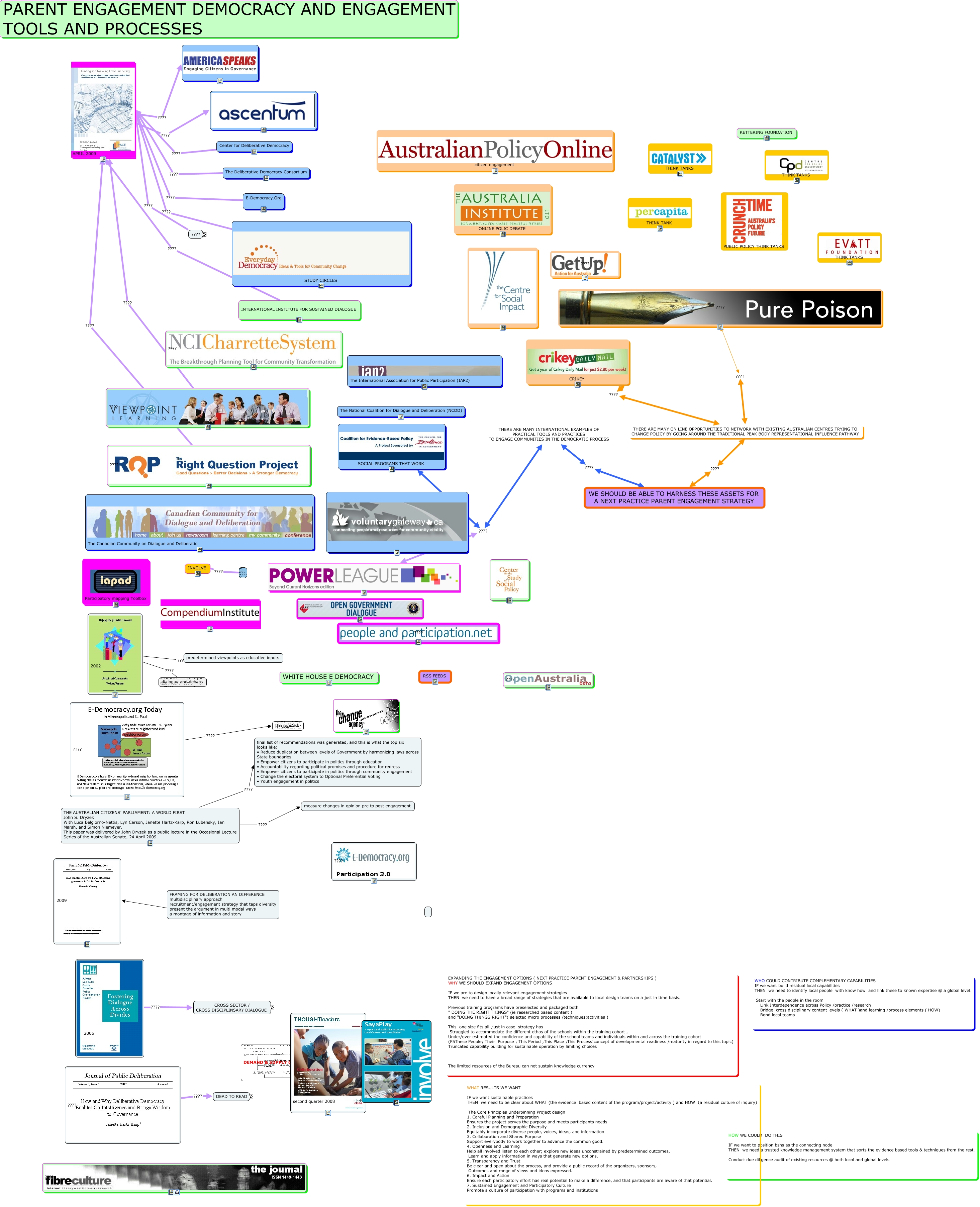 This Concept Map, created with IHMC CmapTools, has information related to: PARENTS & DEMOCRACY AND ENGAGEMENTTOOLS AND PROCESSES, THERE ARE MANY INTERNATIONAL EXAMPLES OF PRACTICAL TOOLS AND PRACTICES TO ENGAGE COMMUNITIES IN THE DEMOCRATIC PROCESS ????, ???? ???? the promise, FRAMING FOR DELIBERATION AN DIFFERENCE multidisciplinary approach recruitment/engagement strategy that taps diversity present the argument in multi modal ways a montage of information and story ???? 2009, ???? ???? APRIL 2009, THERE ARE MANY INTERNATIONAL EXAMPLES OF PRACTICAL TOOLS AND PRACTICES TO ENGAGE COMMUNITIES IN THE DEMOCRATIC PROCESS ???? SOCIAL PROGRAMS THAT WORK, Center for Deliberative Democracy ???? APRIL 2009, APRIL 2009 ????, APRIL 2009 ????, THE AUSTRALIAN CITIZENS’ PARLIAMENT: A WORLD FIRST John S. Dryzek With Luca Belgiorno-Nettis, Lyn Carson, Janette Hartz-Karp, Ron Lubensky, Ian Marsh, and Simon Niemeyer. This paper was delivered by John Dryzek as a public lecture in the Occasional Lecture Series of the Australian Senate, 24 April 2009. ???? measure changes in opinion pre to post engagement, INTERNATIONAL INSTITUTE FOR SUSTAINED DIALOGUE ???? APRIL 2009, 2006 ???? CROSS SECTOR / CROSS DISCIPLINSARY DIALOGUE, WE SHOULD BE ABLE TO HARNESS THESE ASSETS FOR A NEXT PRACTICE PARENT ENGAGEMENT STRATEGY ???? THERE ARE MANY ON LINE OPPORTUNITIES TO NETWORK WITH EXISTING AUSTRALIAN CENTRES TRYING TO CHANGE POLICY BY GOING AROUND THE TRADITIONAL PEAK BODY REPRESENTATIONAL INFLUENCE PATHWAY, WE SHOULD BE ABLE TO HARNESS THESE ASSETS FOR A NEXT PRACTICE PARENT ENGAGEMENT STRATEGY ???? THERE ARE MANY INTERNATIONAL EXAMPLES OF PRACTICAL TOOLS AND PRACTICES TO ENGAGE COMMUNITIES IN THE DEMOCRATIC PROCESS, E-Democracy.Org ???? APRIL 2009, THERE ARE MANY ON LINE OPPORTUNITIES TO NETWORK WITH EXISTING AUSTRALIAN CENTRES TRYING TO CHANGE POLICY BY GOING AROUND THE TRADITIONAL PEAK BODY REPRESENTATIONAL INFLUENCE PATHWAY ???? CRIKEY, ???? ???? APRIL 2009, THERE ARE MANY ON LINE OPPORTUNITIES TO NETWORK WITH EXISTING AUSTRALIAN CENTRES TRYING TO CHANGE POLICY BY GOING AROUND THE TRADITIONAL PEAK BODY REPRESENTATIONAL INFLUENCE PATHWAY ???? ????, STUDY CIRCLES ???? APRIL 2009, ???? INVOLVE, The Deliberative Democracy Consortium ???? APRIL 2009