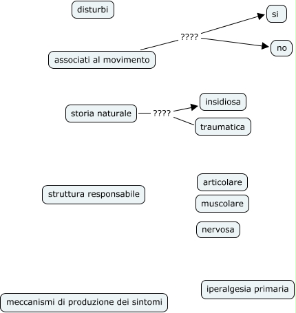 Questa Cmap, creata con IHMC CmapTools, contiene informazioni relative a: maitland disturbi di movimento, storia naturale ???? insidiosa, associati al movimento ???? si, storia naturale ???? traumatica, associati al movimento ???? no