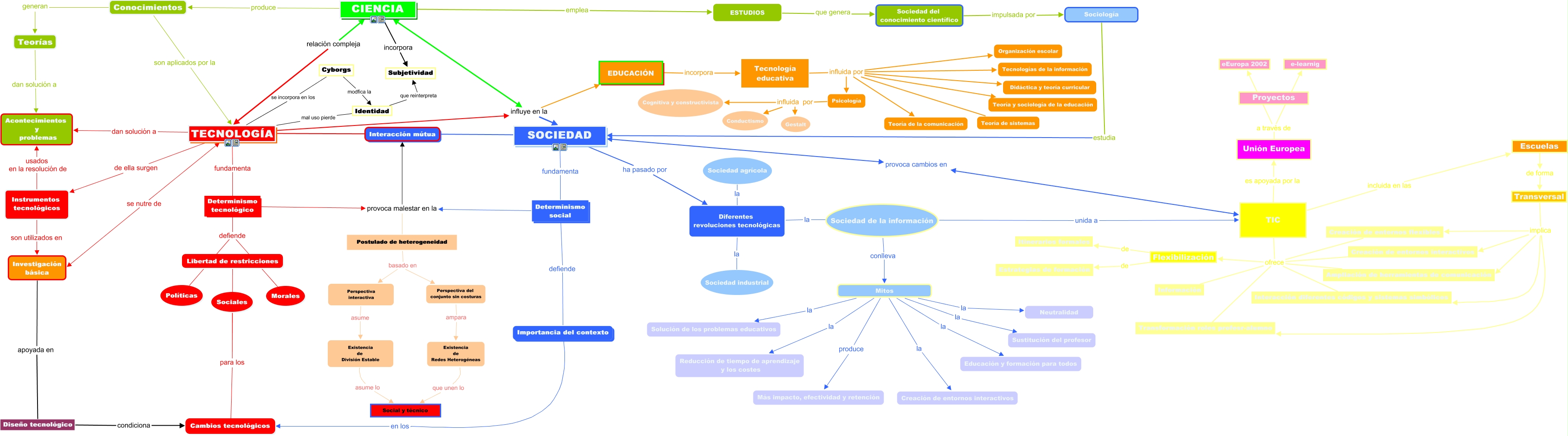 Este Cmap, tiene información relacionada con: Cmap total, SOCIEDAD ha pasado por Diferentes revoluciones tecnológicas, Conocimientos generan Teorías, Mitos la Neutralidad, CIENCIA incorpora Subjetividad, TIC incluida en las Escuelas, Sociología estudia SOCIEDAD, Transversal implica Ampliación de herramientas de comunicación, Postulado de heterogeneidad provoca malestar en la Interacción mútua, Perspectiva interactiva asume Existencia de División Estable, Mitos la Solución de los problemas educativos, Escuelas de forma Transversal, Flexibilización de Itinerarios formales, Diferentes revoluciones tecnológicas la Sociedad de la información, Diferentes revoluciones tecnológicas la Sociedad industrial, TIC ofrece Transformación roles profesr-alumno, Existencia de División Estable asume lo Social y técnico, Importancia del contexto en los Cambios tecnológicos, TECNOLOGÍA influye en la CIENCIA, Mitos la Educación y formación para todos, Unión Europea a través de e-learnig