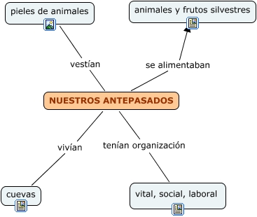 Este Cmap, tiene información relacionada con: Nuestros antepasados, NUESTROS ANTEPASADOS vivían cuevas, pieles de animales vestían NUESTROS ANTEPASADOS, NUESTROS ANTEPASADOS se alimentaban animales y frutos silvestres, NUESTROS ANTEPASADOS tenían organización vital, social, laboral