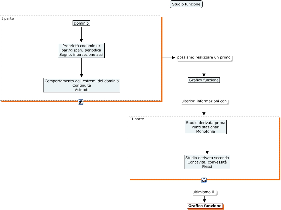 Questa Cmap, creata con IHMC CmapTools, contiene informazioni relative a: Studiofunzione, Dominio Proprietà codominio: pari/dispari, periodica Segno, intersezione assi, I parte possiamo realizzare un primo Grafico funzione, Grafico funzione ulteriori informazioni con II parte, Studio derivata prima Punti stazionari Monotonia ???? Studio derivata seconda Concavità, convessità Flessi, Proprietà codominio: pari/dispari, periodica Segno, intersezione assi Comportamento agli estremi del dominio Continuità Asintoti, II parte ultimiamo il Grafico funzione