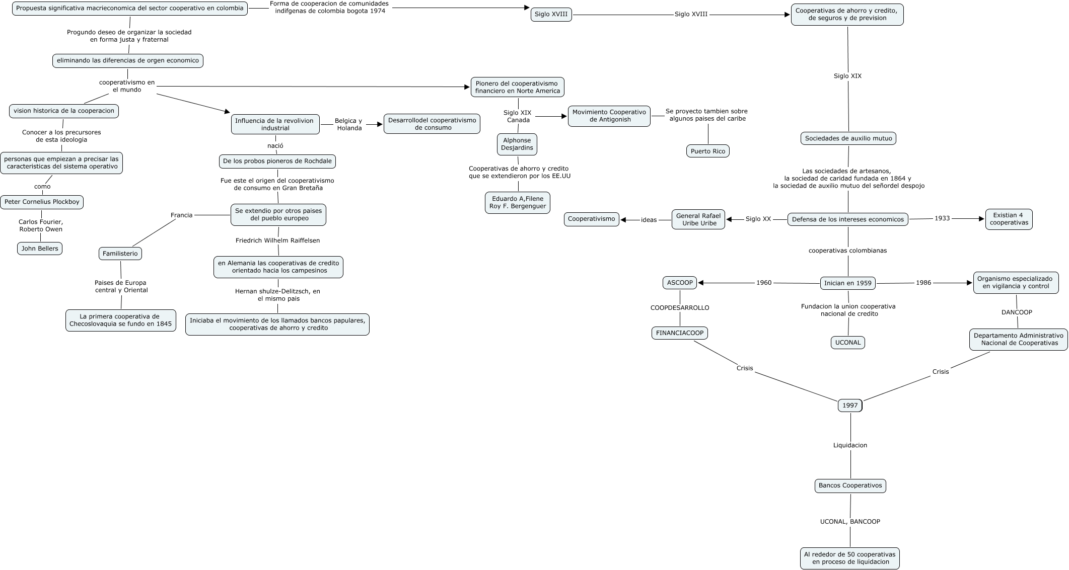 Este Cmap, tiene información relacionada con: INSTITUCIONAL Maria 1, Pionero del cooperativismo financiero en Norte America Siglo XIX Canada Alphonse Desjardins, Defensa de los intereses economicos 1933 Existian 4 cooperativas, ASCOOP COOPDESARROLLO FINANCIACOOP, Defensa de los intereses economicos cooperativas colombianas Inician en 1959, Inician en 1959 1986 Organismo especializado en vigilancia y control, Se extendio por otros paises del pueblo europeo Friedrich Wilhelm Raiffelsen en Alemania las cooperativas de credito orientado hacia los campesinos, Se extendio por otros paises del pueblo europeo Francia Familisterio, Peter Cornelius Plockboy Carlos Fourier, Roberto Owen John Bellers, General Rafael Uribe Uribe ideas Cooperativismo, Inician en 1959 1960 ASCOOP, Familisterio Paises de Europa central y Oriental La primera cooperativa de Checoslovaquia se fundo en 1845, Propuesta significativa macrieconomica del sector cooperativo en colombia Forma de cooperacion de comunidades indifgenas de colombia bogota 1974 Siglo XVIII, Alphonse Desjardins Cooperativas de ahorro y credito que se extendieron por los EE.UU Eduardo A,Filene Roy F. Bergenguer, Bancos Cooperativos UCONAL, BANCOOP Al rededor de 50 cooperativas en proceso de liquidacion, Siglo XVIII Siglo XVIII Cooperativas de ahorro y credito, de seguros y de prevision, eliminando las diferencias de orgen economico cooperativismo en el mundo Influencia de la revolivion industrial, Departamento Administrativo Nacional de Cooperativas Crisis 1997, Movimiento Cooperativo de Antigonish Se proyecto tambien sobre algunos paises del caribe Puerto Rico, Pionero del cooperativismo financiero en Norte America Siglo XIX Canada Movimiento Cooperativo de Antigonish, eliminando las diferencias de orgen economico cooperativismo en el mundo vision historica de la cooperacion