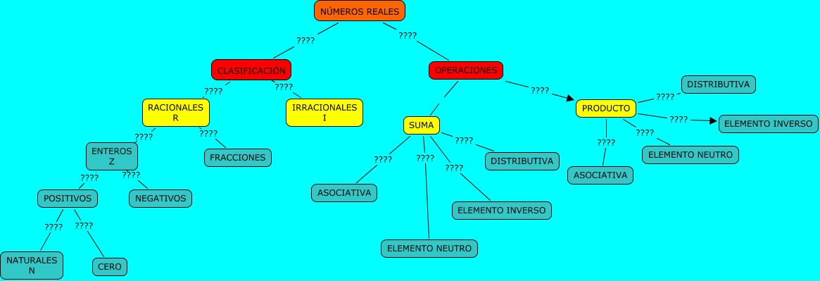 Este Cmap, tiene información relacionada con: NUMEROS REALES, POSITIVOS ???? NATURALES N, CLASIFICACIÓN ???? IRRACIONALES I, PRODUCTO ???? DISTRIBUTIVA, ENTEROS Z ???? POSITIVOS, SUMA ???? ELEMENTO NEUTRO, SUMA ???? DISTRIBUTIVA, PRODUCTO ???? ELEMENTO INVERSO, OPERACIONES SUMA, RACIONALES R ???? ENTEROS Z, SUMA ???? ELEMENTO INVERSO, SUMA ???? ASOCIATIVA, OPERACIONES ???? PRODUCTO, PRODUCTO ???? ASOCIATIVA, CLASIFICACIÓN ???? RACIONALES R, POSITIVOS ???? CERO, ENTEROS Z ???? NEGATIVOS, RACIONALES R ???? FRACCIONES, PRODUCTO ???? ELEMENTO NEUTRO, NÚMEROS REALES ???? CLASIFICACIÓN, NÚMEROS REALES ???? OPERACIONES
