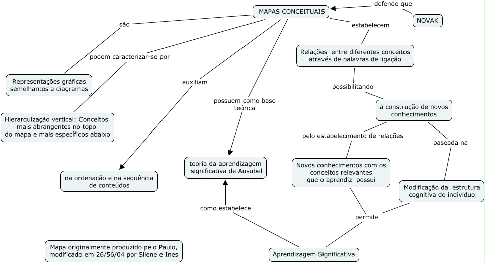 Este Cmap, tiene información relacionada con: Mapa ativ 2 Ines e silene, Relações entre diferentes conceitos através de palavras de ligação possibilitando a construção de novos conhecimentos, Modificação da estrutura cognitiva do indivíduo permite Aprendizagem Significativa, MAPAS CONCEITUAIS podem caracterizar-se por Hierarquização vertical: Conceitos mais abrangentes no topo do mapa e mais específicos abaixo, MAPAS CONCEITUAIS são Representações gráficas semelhantes a diagramas, NOVAK defende que MAPAS CONCEITUAIS, a construção de novos conhecimentos baseada na Modificação da estrutura cognitiva do indivíduo, MAPAS CONCEITUAIS auxiliam na ordenação e na seqüência de conteúdos, Aprendizagem Significativa como estabelece teoria da aprendizagem significativa de Ausubel, a construção de novos conhecimentos pelo estabelecimento de relações Novos conhecimentos com os conceitos relevantes que o aprendiz possui, Novos conhecimentos com os conceitos relevantes que o aprendiz possui permite Aprendizagem Significativa, MAPAS CONCEITUAIS estabelecem Relações entre diferentes conceitos através de palavras de ligação, MAPAS CONCEITUAIS possuem como base teórica teoria da aprendizagem significativa de Ausubel
