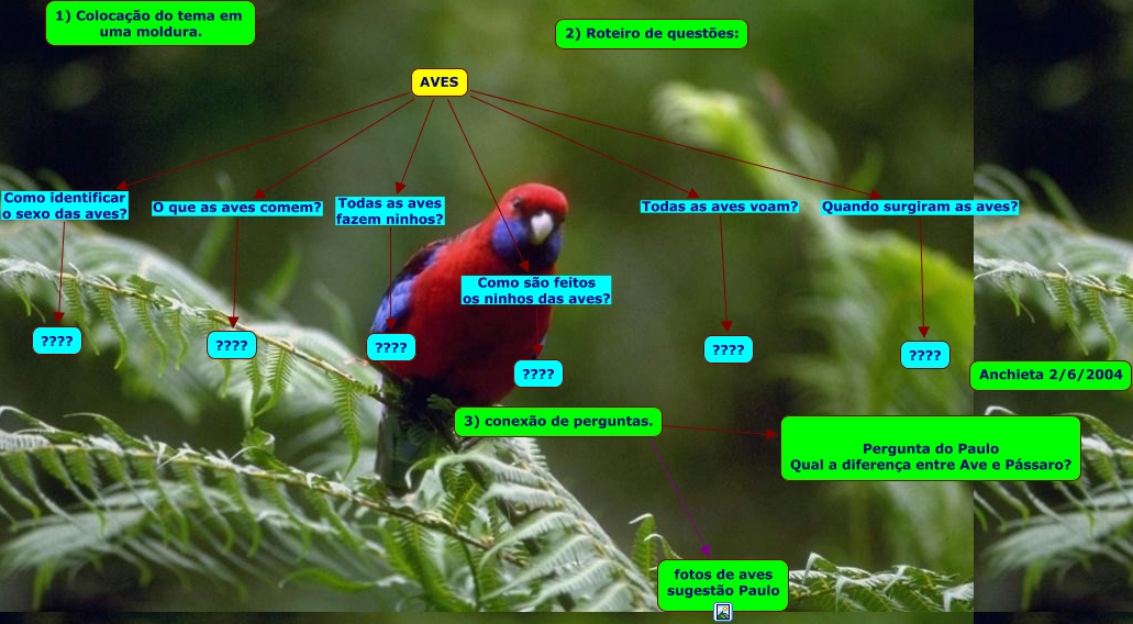 Este Cmap, tiene información relacionada con: perguntas sobre aves, AVES Quando surgiram as aves? ????, AVES Todas as aves voam? ????, AVES Como identificar o sexo das aves? ????, AVES O que as aves comem? ????, AVES Como são feitos os ninhos das aves? ????, 3) conexão de perguntas. ???? fotos de aves sugestão Paulo, AVES Todas as aves fazem ninhos? ????, 3) conexão de perguntas. ???? Pergunta do Paulo Qual a diferença entre Ave e Pássaro?