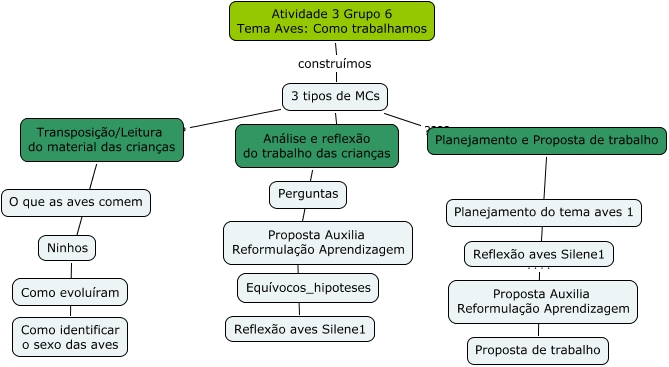 Este Cmap, tiene información relacionada con: Sumário, Planejamento e Proposta de trabalho ???? Proposta de trabalho, Análise e reflexão do trabalho das crianças ???? Reflexão aves Silene1, 3 tipos de MCs ???? Planejamento e Proposta de trabalho, Atividade 3 Grupo 6 Tema Aves: Como trabalhamos construímos 3 tipos de MCs, Transposição/Leitura do material das crianças ???? Como identificar o sexo das aves, 3 tipos de MCs ???? Transposição/Leitura do material das crianças, 3 tipos de MCs ???? Análise e reflexão do trabalho das crianças