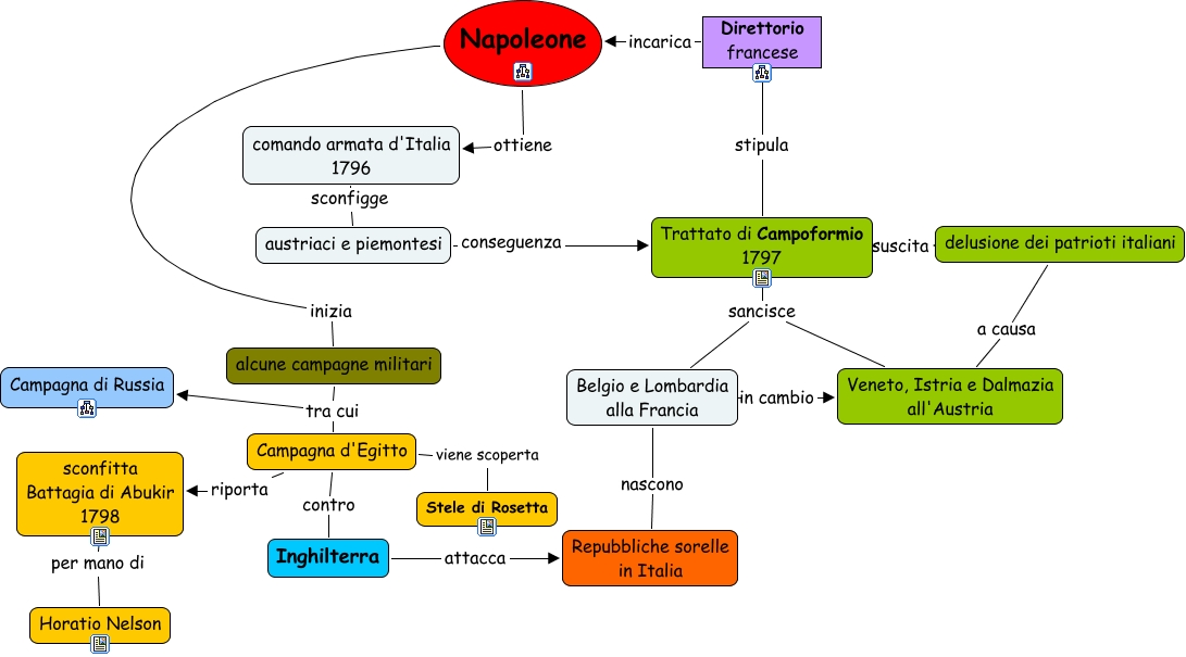 Questa Cmap, creata con IHMC CmapTools, contiene informazioni relative a: Napoleone_esordi, alcune campagne militari tra cui Campagna di Russia, Belgio e Lombardia alla Francia in cambio Veneto, Istria e Dalmazia all'Austria, Trattato di Campoformio 1797 sancisce Veneto, Istria e Dalmazia all'Austria, austriaci e piemontesi conseguenza Trattato di Campoformio 1797, comando armata d'Italia 1796 sconfigge austriaci e piemontesi, alcune campagne militari tra cui Campagna d'Egitto, Direttorio francese stipula Trattato di Campoformio 1797, Campagna d'Egitto viene scoperta Stele di Rosetta, Napoleone inizia alcune campagne militari, Belgio e Lombardia alla Francia nascono Repubbliche sorelle in Italia, Campagna d'Egitto riporta sconfitta Battagia di Abukir 1798, sconfitta Battagia di Abukir 1798 per mano di Horatio Nelson, Direttorio francese incarica Napoleone, Campagna d'Egitto contro Inghilterra, Napoleone ottiene comando armata d'Italia 1796, Inghilterra attacca Repubbliche sorelle in Italia, Trattato di Campoformio 1797 suscita delusione dei patrioti italiani, delusione dei patrioti italiani a causa Veneto, Istria e Dalmazia all'Austria, Trattato di Campoformio 1797 sancisce Belgio e Lombardia alla Francia