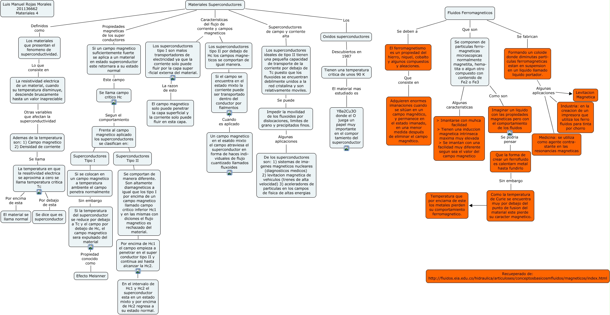 This Concept Map, created with IHMC CmapTools, has information related to: materiales superconductores, Frente al campo magnetico aplicado los superconductores se clasifican en: ???? Superconductores Tipo II, Si un campo magnetico suficientemente fuerte se aplica a un material en estado superconductor este retornara a su estado normal Este campo Se llama campo critico Hc, Materiales Superconductores Caracteristicas del flujo de corriente y campos magneticos Los superconductores tipo I son malos transportadores de electricidad ya que la corriente solo puede fluir por la capa super -ficial externa del material., Formando un coloide donde diminutas parti- culas ferromagneticas estan en suspension en un liquido llamado liquido portador. Algunas aplicaciones Industria: en la creacion de un impresora que utiliza los ferro fluidos para tinta por chorro, Ademas de la temperatura son: 1) Campo magnetico 2) Densidad de corriente Se llama La temperatura en que la ressitividad electrica se aproxima a cero se llama temperatura critica Tc, Los materiales que presentan el fenomeno de superconductividad. Lo que consiste en La resistividad electrica de un material, cuando su temperatura disminuye, desciende bruscamente hasta un valor inapreciable, Materiales Superconductores Caracteristicas del flujo de corriente y campos magneticos Los superconductores tipo II por debajo de Hc los campos magne- ticos se comportan de igual manera., Como la temperatura de Curie se encuentra muy por debajo del punto de fusion del material este pierde su caracter magnetico. ???? Temperatura que por enciama de este los metales pierden su comportamiento ferromagnetico., Oxidos superconductores Descubiertos en 1987 Tienen una temperatura critica de unos 90 K, Se llama campo critico Hc Segun el comportamiento Frente al campo magnetico aplicado los superconductores se clasifican en:, Fluidos Ferromagneticos Se deben a El ferromagnetismo es un propiedad del hierro, niquel, cobalto y algunos compuestos y aleaciones., La temperatura en que la ressitividad electrica se aproxima a cero se llama temperatura critica Tc Por debajo de esta Se dice que es superconductor, Si se colocan en un campo magnetico a temperatura ambiente el campo penetra normalmente Sin embargo Si la temperatura del superconductor se reduce por debajo a Tc y el campo por debajo de Hc, el campo magnetico sera expulsado del material, Por encima de Hc1 el campo empieza a penetrar en el super conductor tipo II y continua asi hasta alcanzar la Hc2. En el intervalo de Hc1 y Hc2 el superconductor esta en un estado mixto y por encima de Hc2 regresa a su estado normal., Materiales Superconductores Los Oxidos superconductores, Imaginar un liquido con las propiedades magneticas pero con el comportamiento de los fluidos Se podria pensar Que la forma de crear un ferrofluido es calentarn metal hasta fundirlo, Impedir la movilidad de los fluxoides por dislocaciones, limites de grano y precipitados finos. Algunas aplicaciones De los superconductores son: 1) sistemas de ima- genes magneticos nucleares (diagnosticos medicos) 2) levitacion magnetica de vehiculos (trenes de alta velocidad) 3) aceleradores de particulas en los campos de fisica de altas energias, Formando un coloide donde diminutas parti- culas ferromagneticas estan en suspension en un liquido llamado liquido portador. Algunas aplicaciones Medicina: se utiliza como agente contra- stante en las resonancias magneticas, Los superconductores tipo I son malos transportadores de electricidad ya que la corriente solo puede fluir por la capa super -ficial externa del material. La razon de esto El campo magnetico solo puede penetrar la capa superficial y la corriente solo puede fluir en esta capa., Materiales Superconductores Superconductores de campo y corriente alta Los superconductores ideales de tipo II tienen una pequeña capacidad de transporte de la corriente por debajo de Tc puesto que los fluxoides se encuentran debilmente unidos a la red cristalina y son relativamente moviles.