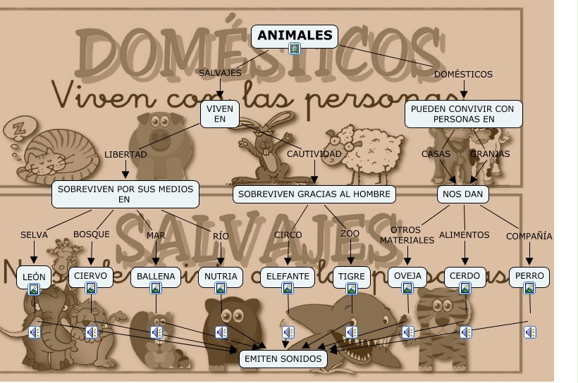 Este Cmap, tiene información relacionada con: 3. Animales, NUTRIA EMITEN SONIDOS, SOBREVIVEN POR SUS MEDIOS EN RÍO NUTRIA, OVEJA EMITEN SONIDOS, PUEDEN CONVIVIR CON PERSONAS EN GRANJAS NOS DAN, NOS DAN COMPAÑÍA PERRO, VIVEN EN LIBERTAD SOBREVIVEN POR SUS MEDIOS EN, SOBREVIVEN POR SUS MEDIOS EN SELVA LEÓN, CERDO EMITEN SONIDOS, ANIMALES SALVAJES VIVEN EN, SOBREVIVEN GRACIAS AL HOMBRE CIRCO ELEFANTE, TIGRE EMITEN SONIDOS, NOS DAN ALIMENTOS CERDO, NOS DAN OTROS MATERIALES OVEJA, VIVEN EN CAUTIVIDAD SOBREVIVEN GRACIAS AL HOMBRE, SOBREVIVEN POR SUS MEDIOS EN MAR BALLENA, ANIMALES DOMÉSTICOS PUEDEN CONVIVIR CON PERSONAS EN, PUEDEN CONVIVIR CON PERSONAS EN CASAS NOS DAN, SOBREVIVEN GRACIAS AL HOMBRE ZOO TIGRE, SOBREVIVEN POR SUS MEDIOS EN BOSQUE CIERVO, PERRO EMITEN SONIDOS