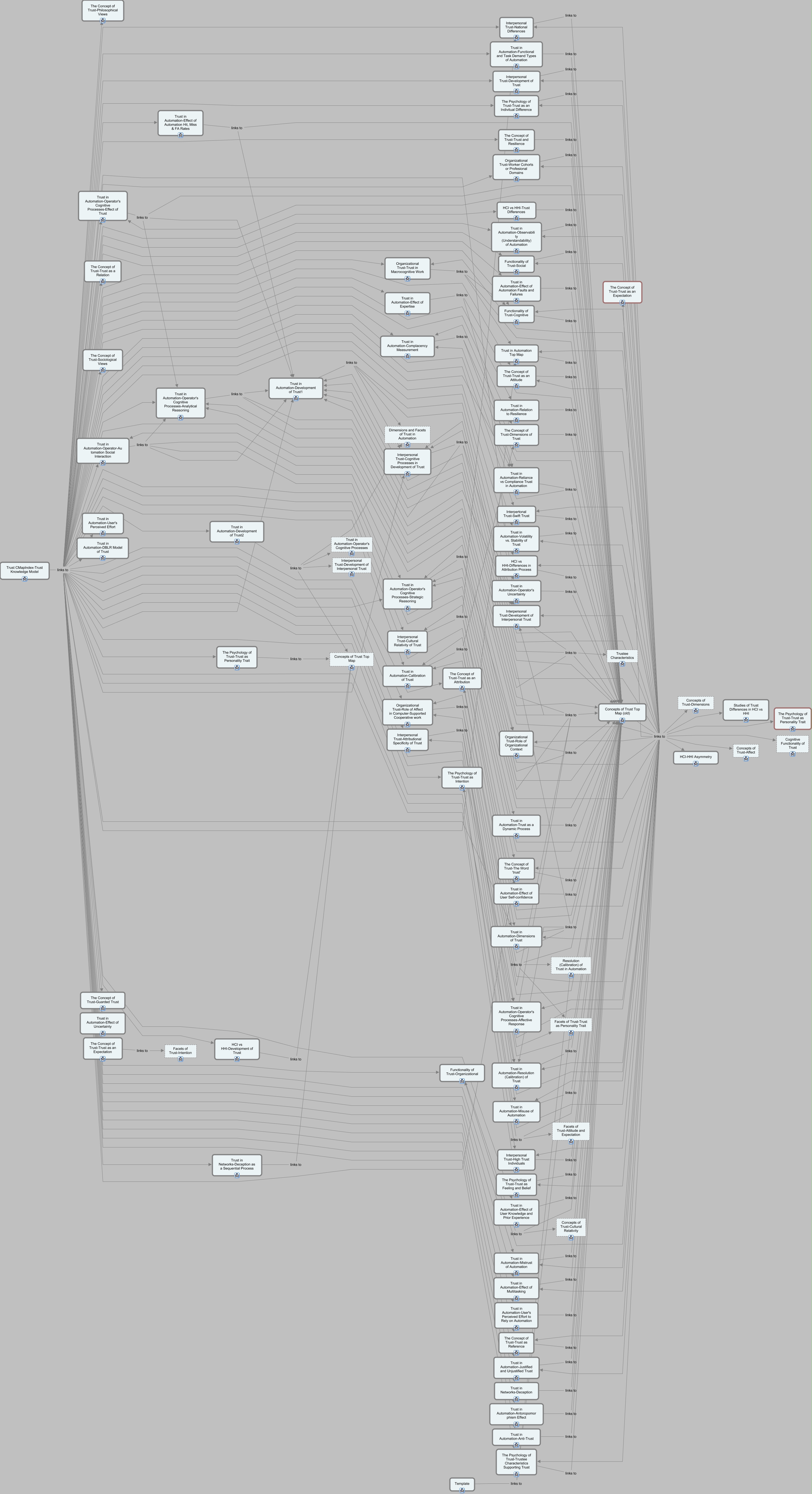 This Concept Map, created with IHMC CmapTools, has information related to: (Map of Cmaps) TRUST Knowledge Model_1Jul09, Trust in Automation-Development of Trust1 links to Concepts of Trust Top Map (old), Trust CMapIndex-Trust Knowledge Model links to Trust in Automation-Observabili ty (Understandability) of Automation, Trust CMapIndex-Trust Knowledge Model links to Functionality of Trust-Cognitive, Trust CMapIndex-Trust Knowledge Model links to The Concept of Trust-Trust and Resilience, Trust CMapIndex-Trust Knowledge Model links to The Concept of Trust-Trust as an Expectation, Trust CMapIndex-Trust Knowledge Model links to Interpersonal Trust-Development of Trust, Trust in Automation-Operator's Cognitive Processes-Effect of Trust links to Concepts of Trust Top Map (old), Organizational Trust-Role of Affect in Computer-Supported Cooperative work links to Concepts of Trust Top Map (old), Template links to Facets of Trust-Trust as Personality Trait, Trust CMapIndex-Trust Knowledge Model links to Organizational Trust-Role of Organizational Context, Trust CMapIndex-Trust Knowledge Model links to Interpersonal Trust-High Trust Individuals, Trust CMapIndex-Trust Knowledge Model links to Organizational Trust-Worker Cohorts or Profesional Domains, Trust in Automation-Trust as a Dynamic Process links to Concepts of Trust Top Map (old), Trust in Automation-Effect of User Self-confidence links to Concepts of Trust Top Map (old), The Psychology of Trust-Trust as an Indivitual Difference links to Concepts of Trust Top Map (old), Concepts of Trust Top Map (old) links to HCI vs HHI-Differences in Attribution Process, Trust CMapIndex-Trust Knowledge Model links to The Psychology of Trust-Trust as Intention, Concepts of Trust Top Map (old) links to Trust in Automation-Justified and Unjustified Trust, Trust in Automation-Operator-Au tomation Social Interaction links to Trust in Automation-Operator's Cognitive Processes-Analytical Reasoning, Trust in Automation-Effect of User Knowledge and Prior Experience links to Concepts of Trust Top Map (old)