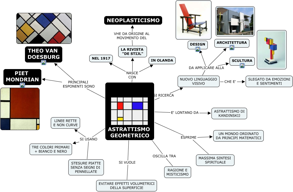 Questa Cmap, creata con IHMC CmapTools, contiene informazioni relative a: ASTRATTISMO GEOMETRICO, ASTRATTISMO GEOMETRICO SI USANO TRE COLORI PRIMARI + BIANCO E NERO, NUOVO LINGUAGGIO VISIVO DA APPLICARE ALLA DESIGN, MASSIMA SINTESI SPIRITUALE ESPRIME UN MONDO ORDINATO DA PRINCIPI MATEMATICI, ASTRATTISMO GEOMETRICO SI USANO STESURE PIATTE SENZA SEGNI DI PENNELLATE, ASTRATTISMO GEOMETRICO NASCE CON NEL 1917, ASTRATTISMO GEOMETRICO SI VUOLE EVITARE EFFETTI VOLUMETRICI DELLA SUPERFICIE, ASTRATTISMO GEOMETRICO SI RICERCA NUOVO LINGUAGGIO VISIVO, ASTRATTISMO GEOMETRICO OSCILLA TRA RAGIONE E MISTICISMO, ASTRATTISMO GEOMETRICO PRINCIPALI ESPONENTI SONO THEO VAN DOESBURG, ASTRATTISMO GEOMETRICO NASCE CON IN OLANDA, NUOVO LINGUAGGIO VISIVO DA APPLICARE ALLA SCULTURA, ASTRATTISMO GEOMETRICO E' LONTANO DA ASTRATTISMO DI KANDINSKIJ, NUOVO LINGUAGGIO VISIVO DA APPLICARE ALLA ARCHITETTURA, ASTRATTISMO GEOMETRICO SI USANO LINEE RETTE E NON CURVE, NUOVO LINGUAGGIO VISIVO CHE E' SLEGATO DA EMOZIONI E SENTIMENTI, ASTRATTISMO GEOMETRICO PRINCIPALI ESPONENTI SONO PIET MONDRIAN, ASTRATTISMO GEOMETRICO NASCE CON LA RIVISTA "DE STIJL", LA RIVISTA "DE STIJL" VHE DA ORIGINE AL MOVIMENTO DEL NEOPLASTICISMO, ASTRATTISMO GEOMETRICO ESPRIME UN MONDO ORDINATO DA PRINCIPI MATEMATICI