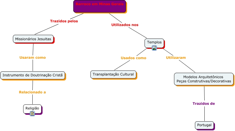 Esse mapa conceitual, produzido no IHMC CmapTools, tem a informação relacionada a: Projeto_Elizene, Missionários Jesuitas Usaram como Instrumento de Doutrinação Cristã, Modelos Arquitetônicos Peças Construtivas/Decorativas Trazidos de Portugal, Barroco em Minas Gerais Utilizados nos Templos, Templos Usados como Transplantação Cultural, Barroco em Minas Gerais Trazidos pelos Missionários Jesuitas, Instrumento de Doutrinação Cristã Relacionado a Religião, Templos Utilizaram Modelos Arquitetônicos Peças Construtivas/Decorativas