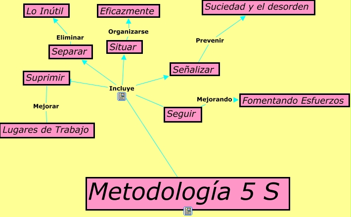 Este Cmap, tiene información relacionada con: dsm 5s, Situar Organizarse Eficazmente, Separar Eliminar Lo Inútil, Seguir Mejorando Fomentando Esfuerzos, Metodología 5 S Incluye Situar, Metodología 5 S Incluye Señalizar, Metodología 5 S Incluye Seguir, Suprimir Mejorar Lugares de Trabajo, Metodología 5 S Incluye Separar, Metodología 5 S Incluye ????, Señalizar Prevenir Suciedad y el desorden
