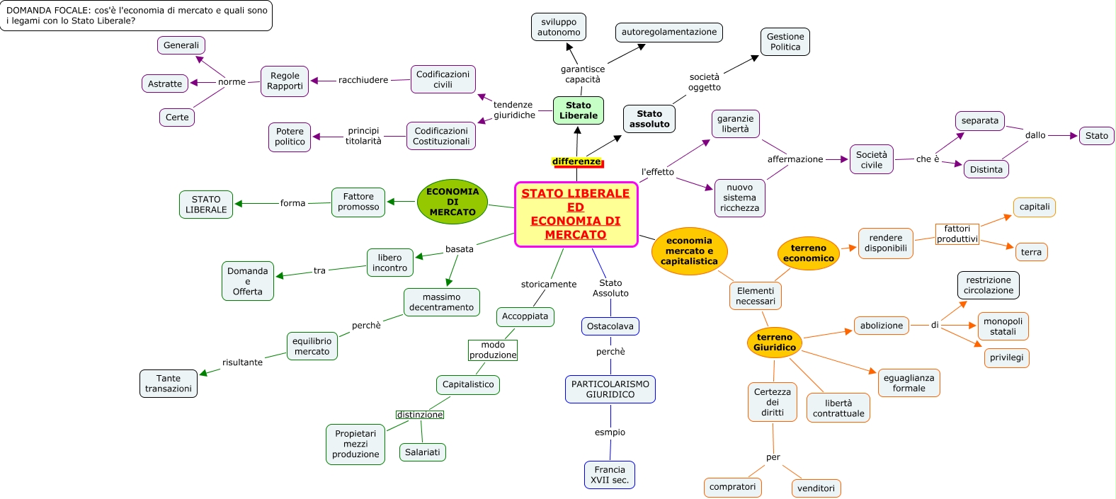 Questa Cmap, creata con IHMC CmapTools, contiene informazioni relative a: Pag 39-40 STATO LIBERALE ED ECONIMIA DI MERCATO, STATO LIBERALE ED ECONOMIA DI MERCATO differenze Stato assoluto, nuovo sistema ricchezza affermazione Società civile, STATO LIBERALE ED ECONOMIA DI MERCATO l'effetto garanzie libertà, Stato assoluto società oggetto Gestione Politica, Regole Rapporti norme Certe, Elementi necessari terreno Giuridico eguaglianza formale, Elementi necessari terreno Giuridico libertà contrattuale, equilibrio mercato risultante Tante transazioni, PARTICOLARISMO GIURIDICO esmpio Francia XVII sec., Certezza dei diritti per compratori, Elementi necessari terreno Giuridico Certezza dei diritti, separata dallo Stato, Regole Rapporti norme Astratte, STATO LIBERALE ED ECONOMIA DI MERCATO differenze Stato Liberale, Accoppiata modo produzione Capitalistico, STATO LIBERALE ED ECONOMIA DI MERCATO basata massimo decentramento, STATO LIBERALE ED ECONOMIA DI MERCATO l'effetto nuovo sistema ricchezza, abolizione di restrizione circolazione, Capitalistico distinzione Salariati, STATO LIBERALE ED ECONOMIA DI MERCATO storicamente Accoppiata