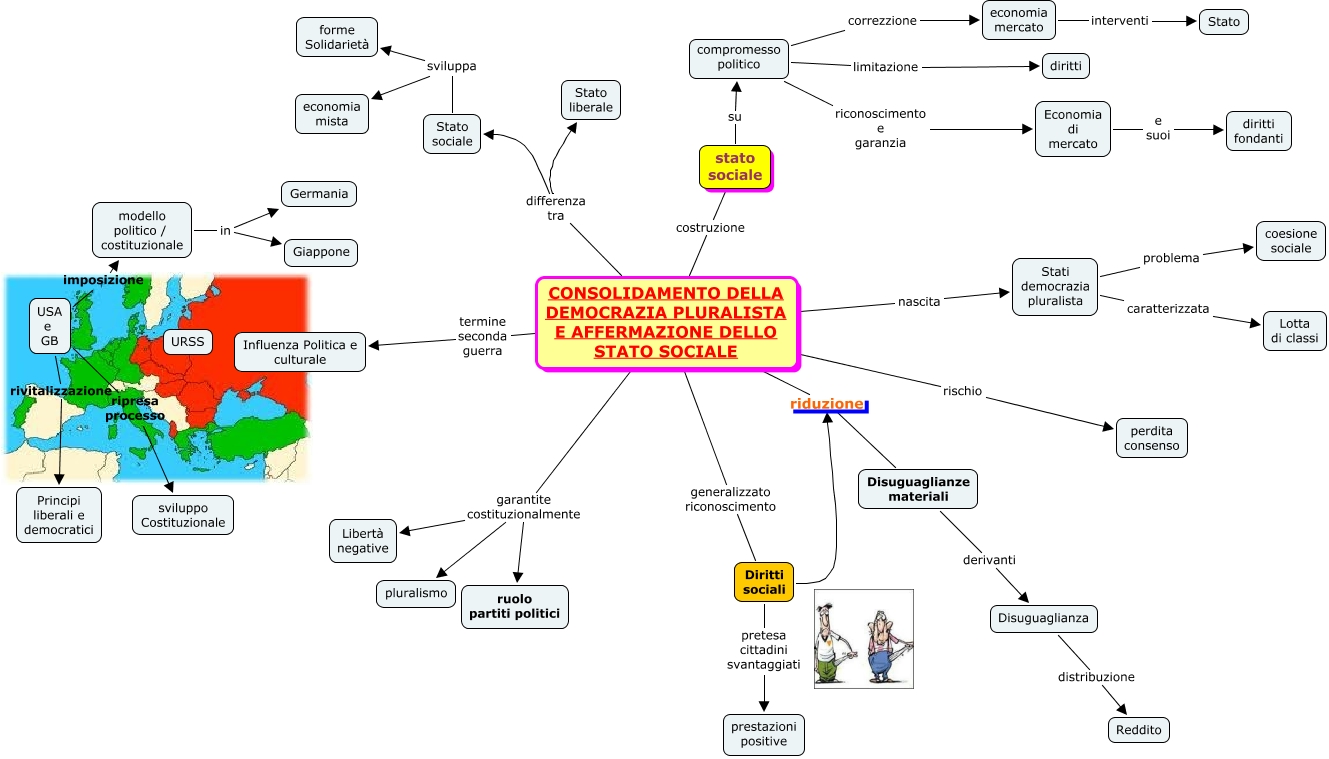 Questa Cmap, creata con IHMC CmapTools, contiene informazioni relative a: Pag 50-53 CONSOLIDAMENTO DELLA DEMOCRAZIA PLURALISTA E AFFERMAZIONE DELLO STATO SOCIALE, Stati democrazia pluralista caratterizzata Lotta di classi, compromesso politico correzzione economia mercato, CONSOLIDAMENTO DELLA DEMOCRAZIA PLURALISTA E AFFERMAZIONE DELLO STATO SOCIALE differenza tra Stato liberale, USA e GB rivitalizzazione Principi liberali e democratici, stato sociale su compromesso politico, Stato sociale sviluppa forme Solidarietà, CONSOLIDAMENTO DELLA DEMOCRAZIA PLURALISTA E AFFERMAZIONE DELLO STATO SOCIALE garantite costituzionalmente pluralismo, CONSOLIDAMENTO DELLA DEMOCRAZIA PLURALISTA E AFFERMAZIONE DELLO STATO SOCIALE garantite costituzionalmente ruolo partiti politici, modello politico / costituzionale in Germania, CONSOLIDAMENTO DELLA DEMOCRAZIA PLURALISTA E AFFERMAZIONE DELLO STATO SOCIALE generalizzato riconoscimento Diritti sociali, CONSOLIDAMENTO DELLA DEMOCRAZIA PLURALISTA E AFFERMAZIONE DELLO STATO SOCIALE rischio perdita consenso, Stati democrazia pluralista problema coesione sociale, CONSOLIDAMENTO DELLA DEMOCRAZIA PLURALISTA E AFFERMAZIONE DELLO STATO SOCIALE differenza tra Stato sociale, USA e GB imposizione modello politico / costituzionale, economia mercato interventi Stato, Economia di mercato e suoi diritti fondanti, CONSOLIDAMENTO DELLA DEMOCRAZIA PLURALISTA E AFFERMAZIONE DELLO STATO SOCIALE garantite costituzionalmente Libertà negative, Diritti sociali riduzione Disuguaglianze materiali, Disuguaglianze materiali derivanti Disuguaglianza, CONSOLIDAMENTO DELLA DEMOCRAZIA PLURALISTA E AFFERMAZIONE DELLO STATO SOCIALE riduzione Disuguaglianze materiali
