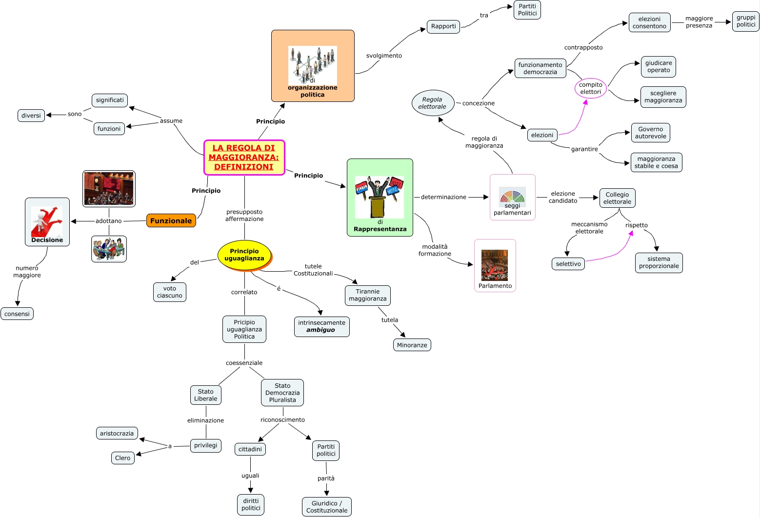 Questa Cmap, creata con IHMC CmapTools, contiene informazioni relative a: Pag 80-83 REGOLA DI MAGGIORANZA - DEFINIZIONI, Regola elettorale concezione funzionamento democrazia, LA REGOLA DI MAGGIORANZA: DEFINIZIONI assume significati, Principio uguaglianza tutele Costituzionali Tirannie maggioranza, privilegi a Clero, funzionamento democrazia compito elettori giudicare operato, Pricipio uguaglianza Politica coessenziale Stato Liberale, LA REGOLA DI MAGGIORANZA: DEFINIZIONI assume funzioni, funzionamento democrazia compito elettori scegliere maggioranza, selettivo rispetto sistema proporzionale, privilegi a aristocrazia, di Rappresentanza determinazione seggi parlamentari, ???? adottano Decisione, Collegio elettorale meccanismo elettorale selettivo, Stato Democrazia Pluralista riconoscimento cittadini, cittadini uguali diritti politici, Principio uguaglianza é intrinsecamente ambiguo, significati sono diversi, Decisione numero maggiore consensi, Tirannie maggioranza tutela Minoranze, Stato Liberale eliminazione privilegi