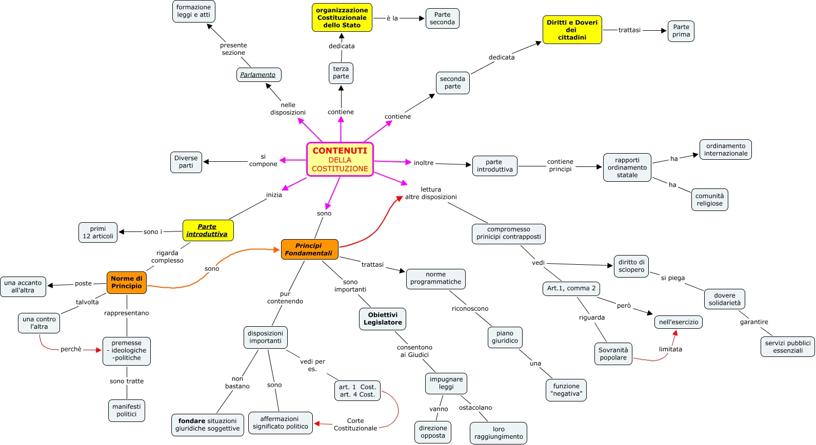 Questa Cmap, creata con IHMC CmapTools, contiene informazioni relative a: Pag 122-125 CONTENUTI DELLA COSTITUZIONE, Norme di Principio talvolta una contro l'altra, CONTENUTI DELLA COSTITUZIONE si compone Diverse parti, impugnare leggi ostacolano loro raggiungimento, una contro l'altra perchè premesse - ideologiche -politiche, impugnare leggi vanno direzione opposta, diritto di sciopero si piega dovere solidarietà, Diritti e Doveri dei cittadini trattasi Parte prima, Norme di Principio sono Principi Fondamentali, dovere solidarietà garantire servizi pubblici essenziali, Principi Fondamentali trattasi norme programmatiche, Art.1, comma 2 riguarda Sovranità popolare, Norme di Principio poste una accanto all'altra, Obiettivi Legislatore consentono ai Giudici impugnare leggi, disposizioni importanti vedi per es. art. 1 Cost. art. 4 Cost., Parlamento presente sezione formazione leggi e atti, organizzazione Costituzionale dello Stato è la Parte seconda, Parte introduttiva rigarda complesso Norme di Principio, Sovranità popolare limitata nell'esercizio, premesse - ideologiche -politiche sono tratte manifesti politici, Principi Fondamentali pur contenendo disposizioni importanti