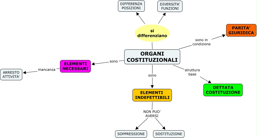 Questa Cmap, creata con IHMC CmapTools, contiene informazioni relative a: Pag 32 GLI ORGANI COSTITUZIONALI, ORGANI COSTITUZIONALI si differenziano DIVERSITA' FUNZIONI, ORGANI COSTITUZIONALI struttura base DETTATA COSTITUZIONE, ELEMENTI NECESSARI mancanza ARRESTO ATTIVITA', ORGANI COSTITUZIONALI sono ELEMENTI INDEFETTIBILI, ORGANI COSTITUZIONALI sono in condizione PARITA' GIURIDICA, ELEMENTI INDEFETTIBILI NON PUO' AVERSI SOPPRESSIONE, ELEMENTI INDEFETTIBILI NON PUO' AVERSI SOSTITUZIONE, ORGANI COSTITUZIONALI si differenziano DIFFERENZA POSIZIONI, ORGANI COSTITUZIONALI sono ELEMENTI NECESSARI