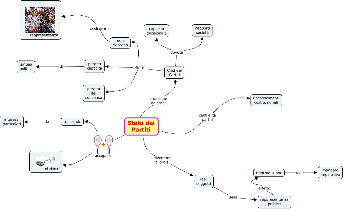 Questa Cmap, creata con IHMC CmapTools, contiene informazioni relative a: Pag 65-68 STATO DEI PARTITI, Crisi dei Partiti effetti perdita del consenso, perdita capacita di sintesi politica, reali soggetti della rappresentanza politica, reintroduzione del mandato imperativo, Stato dei Partiti situazione odierna Crisi dei Partiti, Stato dei Partiti diventano allora!!! reali soggetti, Stato dei Partiti centralità partiti riconoscimenti costituzionali, Crisi dei Partiti effetti non riescono, non riescono assicurare rappresentanza, rappresentanza politica effetto reintroduzione, Crisi dei Partiti dovuta Rapporti società, Crisi dei Partiti effetti perdita capacita, Crisi dei Partiti dovuta capacità decisionale, Stato dei Partiti accoppia elettori, Stato dei Partiti accoppia trascende, trascende da interessi particolari