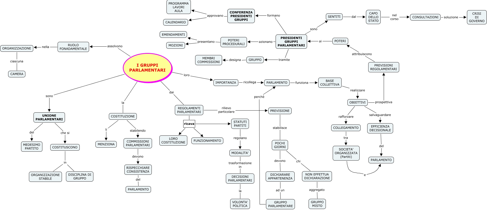 Questa Cmap, creata con IHMC CmapTools, contiene informazioni relative a: Pag 211-212 I GRUPPI PARLAMENTARI, IMPORTANZA ricollega PARLAMENTO, COSTITUZIONE stabilendo COMMISSIONI PARLAMENTARI, PREVISIONE stabilisce POCHI GIORNI, POTERI PROCEDURALI presentano EMENDAMENTI, STATUTI PARTITI regolano MODALITA', ORGANIZZAZIONE ciascuna CAMERA, UNIONE PARLAMENTARI che si COSTITUSCONO, PREVISIONI REGOLAMENTARI attribuiscono POTERI, CONSULTAZIONI soluzione CRISI DI GOVERNO, BASE COLLETTIVA realizzare OBIETTIVI, SOCIETA' ORGANIZZATA (Partiti) e PARLAMENTO, OBIETTIVI prospettiva PREVISIONI REGOLAMENTARI, CONFERENZA PRESIDENTI GRUPPI approvano CALENDARIO, OBIETTIVI salvaguardare EFFICIENZA DECISIONALE, POCHI GIORNI chi NON EFFETTUA DICHIARAZIONE, COSTITUZIONE li MENZIONA, I GRUPPI PARLAMENTARI la COSTITUZIONE, REGOLAMENTI PARLAMENTARI ricava STATUTI PARTITI, REGOLAMENTI PARLAMENTARI ricava FUNZIONAMENTO, PARLAMENTO funziona BASE COLLETTIVA
