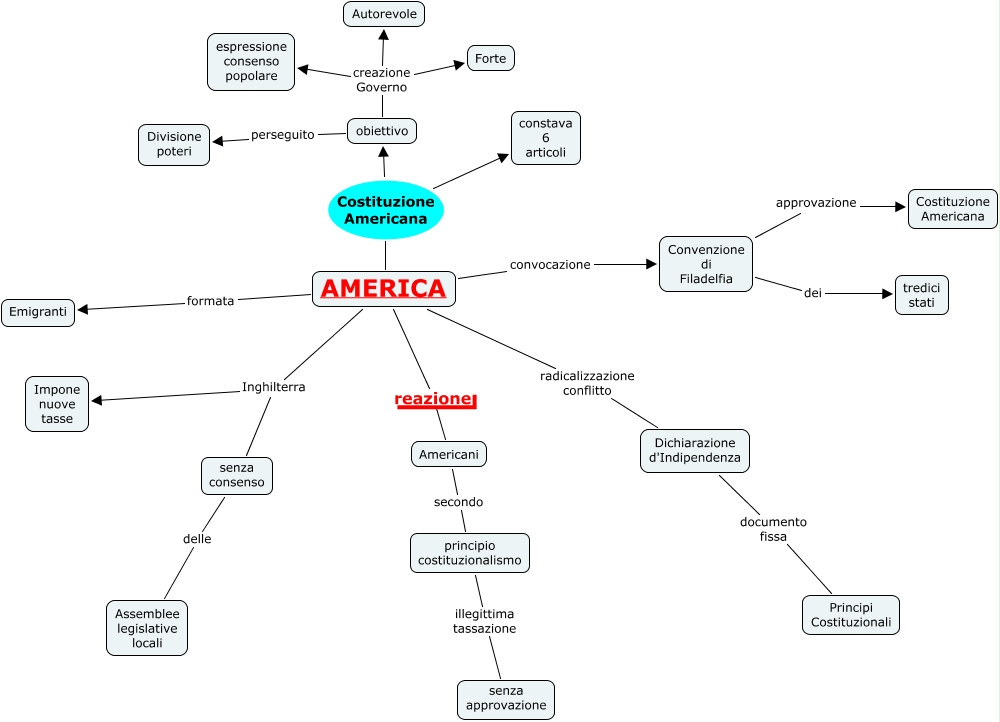 Questa Cmap, creata con IHMC CmapTools, contiene informazioni relative a: Pag 38-39 AMERICA, AMERICA formata Emigranti, Dichiarazione d'Indipendenza documento fissa Principi Costituzionali, AMERICA radicalizzazione conflitto Dichiarazione d'Indipendenza, Americani secondo principio costituzionalismo, AMERICA Inghilterra Impone nuove tasse, AMERICA convocazione Convenzione di Filadelfia, AMERICA Costituzione Americana obiettivo, AMERICA reazione Americani, Convenzione di Filadelfia dei tredici stati, obiettivo creazione Governo Forte, Convenzione di Filadelfia approvazione Costituzione Americana, obiettivo perseguito Divisione poteri, senza consenso delle Assemblee legislative locali, AMERICA Inghilterra senza consenso, AMERICA Costituzione Americana constava 6 articoli, obiettivo creazione Governo Autorevole, principio costituzionalismo illegittima tassazione senza approvazione, obiettivo creazione Governo espressione consenso popolare