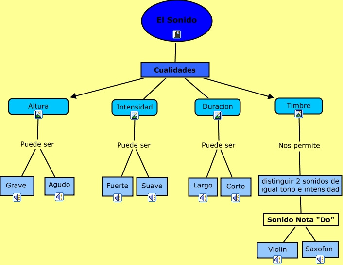 Este Cmap, tiene información relacionada con: El sonido y sus cualidades, Timbre Nos permite distinguir 2 sonidos de igual tono e intensidad, El Sonido Cualidades Intensidad, Duracion Puede ser Corto, El Sonido Cualidades Altura, distinguir 2 sonidos de igual tono e intensidad Sonido Nota "Do" Saxofon, El Sonido Cualidades Timbre, Altura Puede ser Agudo, El Sonido Cualidades Duracion, Duracion Puede ser Largo, Intensidad Puede ser Fuerte, distinguir 2 sonidos de igual tono e intensidad Sonido Nota "Do" Violin, Intensidad Puede ser Suave, Altura Puede ser Grave