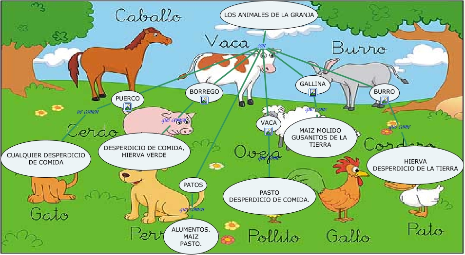 Este Cmap, tiene información relacionada con: animales de la granja, GALLINA que come MAIZ MOLIDO GUSANITOS DE LA TIERRA, PUERCO ue comen CUALQUIER DESPERDICIO DE COMIDA, LOS ANIMALES DE LA GRANJA son PATOS, LOS ANIMALES DE LA GRANJA son VACA, LOS ANIMALES DE LA GRANJA son GALLINA, VACA que come PASTO DESPERDICIO DE COMIDA., BURRO que come HIERVA DESPERDICIO DE LA TIERRA, LOS ANIMALES DE LA GRANJA son BORREGO, LOS ANIMALES DE LA GRANJA son PUERCO, BORREGO que comen DESPERDICIO DE COMIDA, HIERVA VERDE, LOS ANIMALES DE LA GRANJA son BURRO, PATOS que comen ALUMENTOS. MAIZ PASTO.