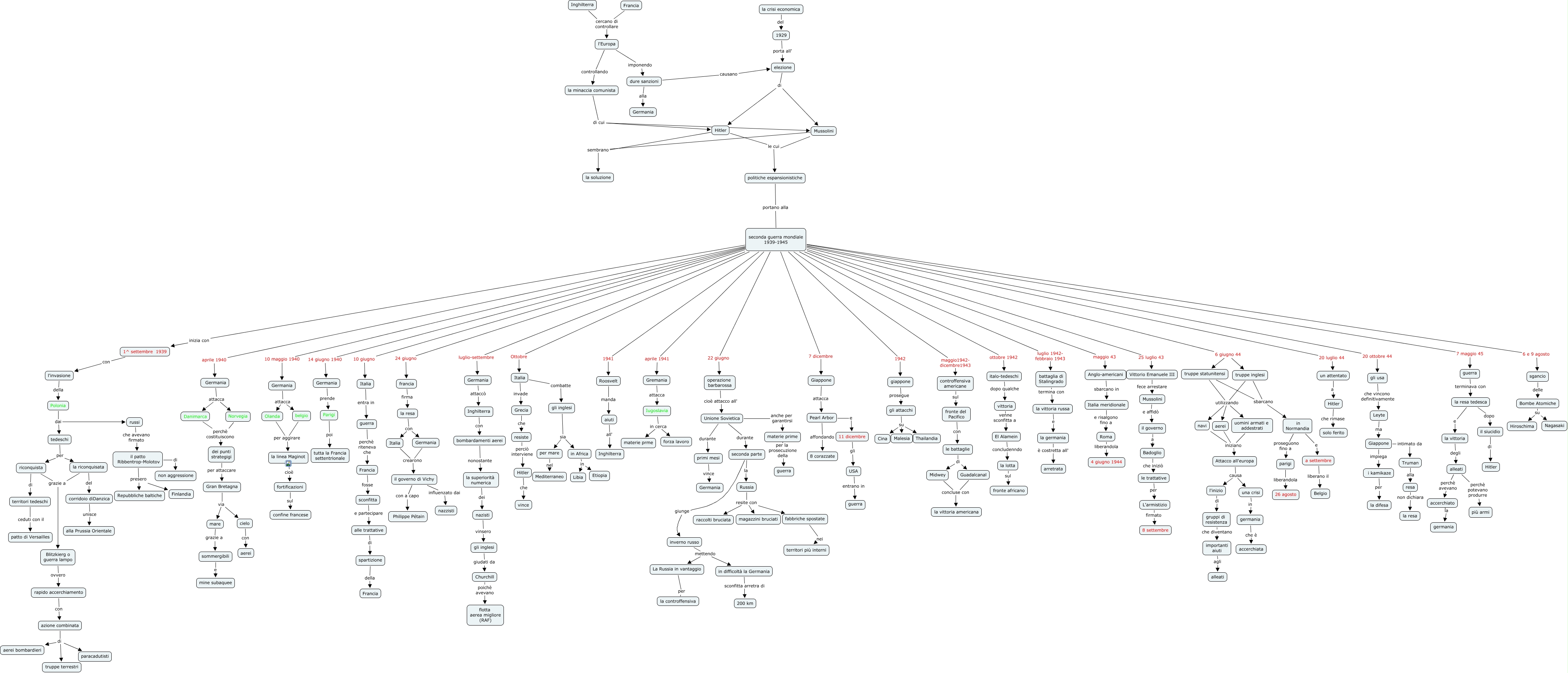 Questa Cmap, creata con IHMC CmapTools, contiene informazioni relative a: seconda guerra mondiale, bombardamenti aerei nonostante la superiorità numerica, Germania attacca belgio, rapido accerchiamento con azione combinata, Germania attaccò Inghilterra, seconda guerra mondiale 1939-1945 6 giugno 44 truppe inglesi, azione combinata di truppe terrestri, a settembre liberano il Belgio, sommergibili e mine subaquee, materie prime per la prosecuzione della guerra, elezione di Mussolini, azione combinata di aerei bombardieri, territori tedeschi ceduti con il patto di Versailles, l'invasione della Polonia, alleati perchè avevano accerchiato, azione combinata di paracadutisti, la germania è costretta all' arretrata, la vittoria degli alleati, truppe inglesi utilizzando uomini armati e addestrati, seconda guerra mondiale 1939-1945 20 ottobre 44 gli usa, Danimarca perchè costituiscono dei punti strategigi