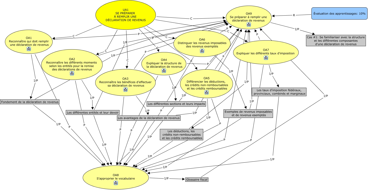 Cette carte de concepts créée avec IHMC CmapTools traite de: UA1, OA5 Différencier les déductions, les crédits non-remboursables et les crédits remboursables I/P Les déductions, les crédits non-remboursables et les crédits remboursables, Exemples de revenus imposables et de revenus esemptés I/P OA9 Se préparer à remplir une déclaration de revenus, OA9 Se préparer à remplir une déclaration de revenus I/P Cas #1: Se familiariser avec la structure et les différentes composantes d’une déclaration de revenus, OA7 Expliquer les différents taux d’imposition p OA9 Se préparer à remplir une déclaration de revenus, OA1 Reconnaître qui doit remplir une déclaration de revenus P OA8 S'approprier le vocabulaire, Fondement de la déclaration de revenus I/P OA9 Se préparer à remplir une déclaration de revenus, Les différentes sections et leurs impacts I/P OA8 S'approprier le vocabulaire, OA6 Distinguer les revenus imposables des revenus exemptés P OA9 Se préparer à remplir une déclaration de revenus, OA7 Expliquer les différents taux d’imposition P OA8 S'approprier le vocabulaire, UA1 SE PRÉPARER À REMPLIR UNE DÉCLARATION DE REVENUS C OA6 Distinguer les revenus imposables des revenus exemptés, OA6 Distinguer les revenus imposables des revenus exemptés I/P Exemples de revenus imposables et de revenus esemptés, OA7 Expliquer les différents taux d’imposition I/P Les taux d'imposition fédéraux, provinciaux, combinés et marginaux, UA1 SE PRÉPARER À REMPLIR UNE DÉCLARATION DE REVENUS C OA3 Reconnaître les bénéfices d’effectuer sa déclaration de revenus, Fondement de la déclaration de revenus I/P OA8 S'approprier le vocabulaire, UA1 SE PRÉPARER À REMPLIR UNE DÉCLARATION DE REVENUS C OA4 Expliquer la structure de la déclaration de revenus, UA1 SE PRÉPARER À REMPLIR UNE DÉCLARATION DE REVENUS C OA9 Se préparer à remplir une déclaration de revenus, OA5 Différencier les déductions, les crédits non-remboursables et les crédits remboursables P OA9 Se préparer à remplir une déclaration de revenus, Exemples de revenus imposables et de revenus esemptés I/P OA8 S'approprier le vocabulaire, Les différentes sections et leurs impacts I/P OA9 Se préparer à remplir une déclaration de revenus, UA1 SE PRÉPARER À REMPLIR UNE DÉCLARATION DE REVENUS C OA5 Différencier les déductions, les crédits non-remboursables et les crédits remboursables