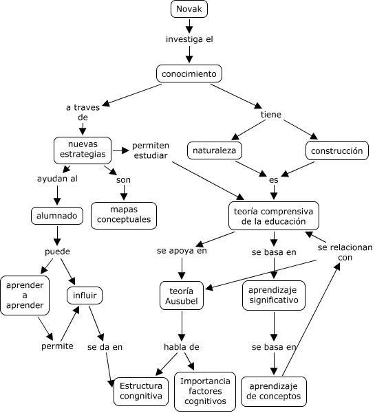 Este Cmap, tiene información relacionada con: Novak, teoría Ausubel habla de Estructura congnitiva, influir se da en Estructura congnitiva, aprendizaje significativo se basa en aprendizaje de conceptos, alumnado puede aprender a aprender, teoría comprensiva de la educación se basa en aprendizaje significativo, nuevas estrategias permiten estudiar teoría comprensiva de la educación, conocimiento tiene construcción, conocimiento tiene naturaleza, nuevas estrategias ayudan al alumnado, construcción es teoría comprensiva de la educación, teoría comprensiva de la educación se apoya en teoría Ausubel, teoría Ausubel habla de Importancia factores cognitivos, Novak investiga el conocimiento, naturaleza es teoría comprensiva de la educación, aprendizaje de conceptos se relacionan con teoría Ausubel, conocimiento a traves de nuevas estrategias, alumnado puede influir, aprendizaje de conceptos se relacionan con teoría comprensiva de la educación, nuevas estrategias son mapas conceptuales, aprender a aprender permite influir
