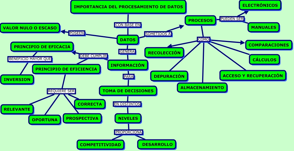 Este Cmap, tiene información relacionada con: CMAPS PROCESAMIENTO DE DATOS, PROCESOS COMO DEPURACIÓN, PROCESOS COMO RECOLECCIÓN, DATOS POSEEN VALOR NULO O ESCASO, INFORMACIÓN PARA TOMA DE DECISIONES, PROCESOS COMO COMPARACIONES, NIVELES PROPORCIONA COMPETITIVIDAD, PRINCIPIO DE EFICIENCIA REQUIERE SER RELEVANTE, DATOS SOMETIDOS A PROCESOS, PROCESOS PUEDEN SER MANUALES, IMPORTANCIA DEL PROCESAMIENTO DE DATOS CON BASE EN DATOS, PROCESOS COMO CÁLCULOS, DATOS GENERA INFORMACIÓN, TOMA DE DECISIONES EN DISTINTOS NIVELES, NIVELES PROPORCIONA DESARROLLO, PRINCIPIO DE EFICIENCIA REQUIERE SER PROSPECTIVA, PROCESOS PUEDEN SER ELECTRÓNICOS, INFORMACIÓN DEBE CUMPLIR PRINCIPIO DE EFICIENCIA, PRINCIPIO DE EFICACIA BENEFICIO MAYOR QUE INVERSION, PRINCIPIO DE EFICIENCIA REQUIERE SER OPORTUNA, PRINCIPIO DE EFICIENCIA REQUIERE SER CORRECTA