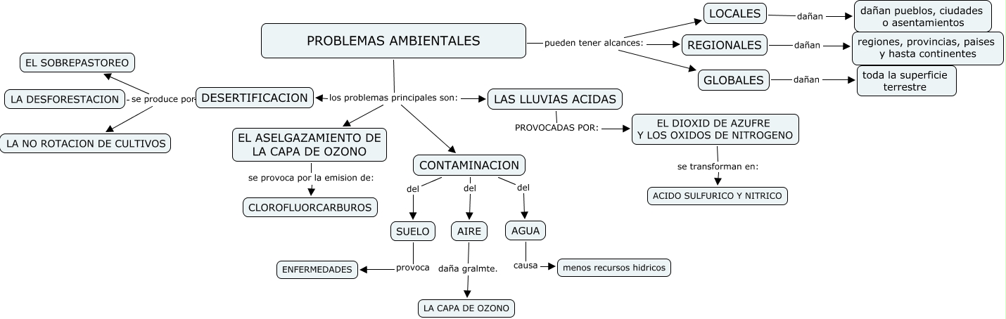 Este Cmap, tiene información relacionada con: MARCOS MOLINI, DESERTIFICACION se produce por LA DESFORESTACION, EL ASELGAZAMIENTO DE LA CAPA DE OZONO se provoca por la emision de: CLOROFLUORCARBUROS, PROBLEMAS AMBIENTALES pueden tener alcances: LOCALES, DESERTIFICACION se produce por EL SOBREPASTOREO, PROBLEMAS AMBIENTALES los problemas principales son: CONTAMINACION, REGIONALES dañan regiones, provincias, paises y hasta continentes, AIRE daña gralmte. LA CAPA DE OZONO, GLOBALES dañan toda la superficie terrestre, PROBLEMAS AMBIENTALES los problemas principales son: DESERTIFICACION, PROBLEMAS AMBIENTALES pueden tener alcances: REGIONALES, CONTAMINACION del SUELO, AGUA causa menos recursos hidricos, LAS LLUVIAS ACIDAS PROVOCADAS POR: EL DIOXID DE AZUFRE Y LOS OXIDOS DE NITROGENO, CONTAMINACION del AIRE, SUELO provoca ENFERMEDADES, CONTAMINACION del AGUA, EL DIOXID DE AZUFRE Y LOS OXIDOS DE NITROGENO se transforman en: ACIDO SULFURICO Y NITRICO, DESERTIFICACION se produce por LA NO ROTACION DE CULTIVOS, PROBLEMAS AMBIENTALES los problemas principales son: EL ASELGAZAMIENTO DE LA CAPA DE OZONO, PROBLEMAS AMBIENTALES pueden tener alcances: GLOBALES