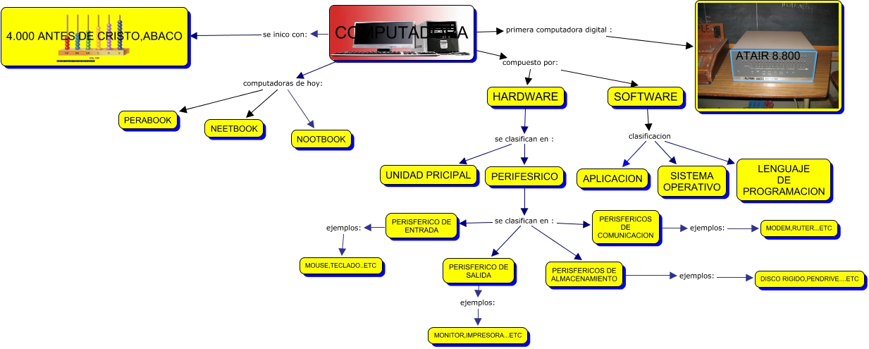 Este Cmap, tiene información relacionada con: Giuliano Reinoso 30-05-13, COMPUTADORA compuesto por: SOFTWARE, PERIFESRICO se clasifican en : PERISFERICOS DE COMUNICACION, COMPUTADORA computadoras de hoy: NEETBOOK, SOFTWARE clasificacion LENGUAJE DE PROGRAMACION, COMPUTADORA computadoras de hoy: PERABOOK, PERIFESRICO se clasifican en : PERISFERICO DE ENTRADA, PERISFERICO DE SALIDA ejemplos: MONITOR,IMPRESORA...ETC, SOFTWARE clasificacion APLICACION, PERISFERICOS DE COMUNICACION ejemplos: MODEM,RUTER...ETC, COMPUTADORA se inico con: 4.000 ANTES DE CRISTO,ABACO, PERIFESRICO se clasifican en : PERISFERICOS DE ALMACENAMIENTO, PERISFERICO DE ENTRADA ejemplos: MOUSE,TECLADO..ETC, HARDWARE se clasifican en : UNIDAD PRICIPAL, COMPUTADORA primera computadora digital : ATAIR 8.800, PERISFERICOS DE ALMACENAMIENTO ejemplos: DISCO RIGIDO,PENDRIVE....ETC, COMPUTADORA computadoras de hoy: NOOTBOOK, SOFTWARE clasificacion SISTEMA OPERATIVO, HARDWARE se clasifican en : PERIFESRICO, COMPUTADORA compuesto por: HARDWARE, PERIFESRICO se clasifican en : PERISFERICO DE SALIDA