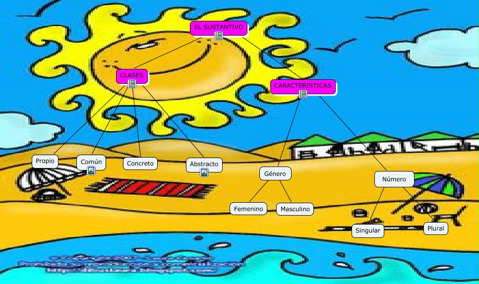 Este Cmap, tiene información relacionada con: sustantivos, CLASES ???? Propio, CARACTERISTICAS G Género, CLASES ???? Abstracto, CLASES ???? Concreto, EL SUSTANTIVO ???? CLASES, Número ???? Plural, Género ???? Masculino, CLASES ???? Común, CARACTERISTICAS ???? Número, Género ???? Femenino, Número ???? Singular, EL SUSTANTIVO ???? CARACTERISTICAS