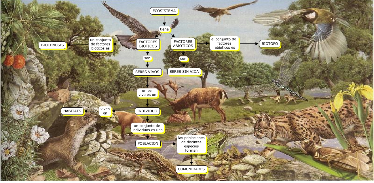 Este Cmap, tiene información relacionada con: MAITE LICATTA 13-06, INDIVIDUO un conjunto de individuos es una POBLACION, SERES VIVOS un ser vivo es un INDIVIDUO, FACTORES ABIOTICOS el conjunto de factores abioticos es BIOTOPO, ECOSISTEMA tiene FACTORES ABIOTICOS, FACTORES BIOTICOS son SERES VIVOS, FACTORES ABIOTICOS son SERES SIN VIDA, ECOSISTEMA tiene FACTORES BIOTICOS, FACTORES BIOTICOS un conjunto de factores bioticos es BIOCENOSIS, POBLACION las poblaciones de distintas especies forman COMUNIDADES, INDIVIDUO viven en HABITATS