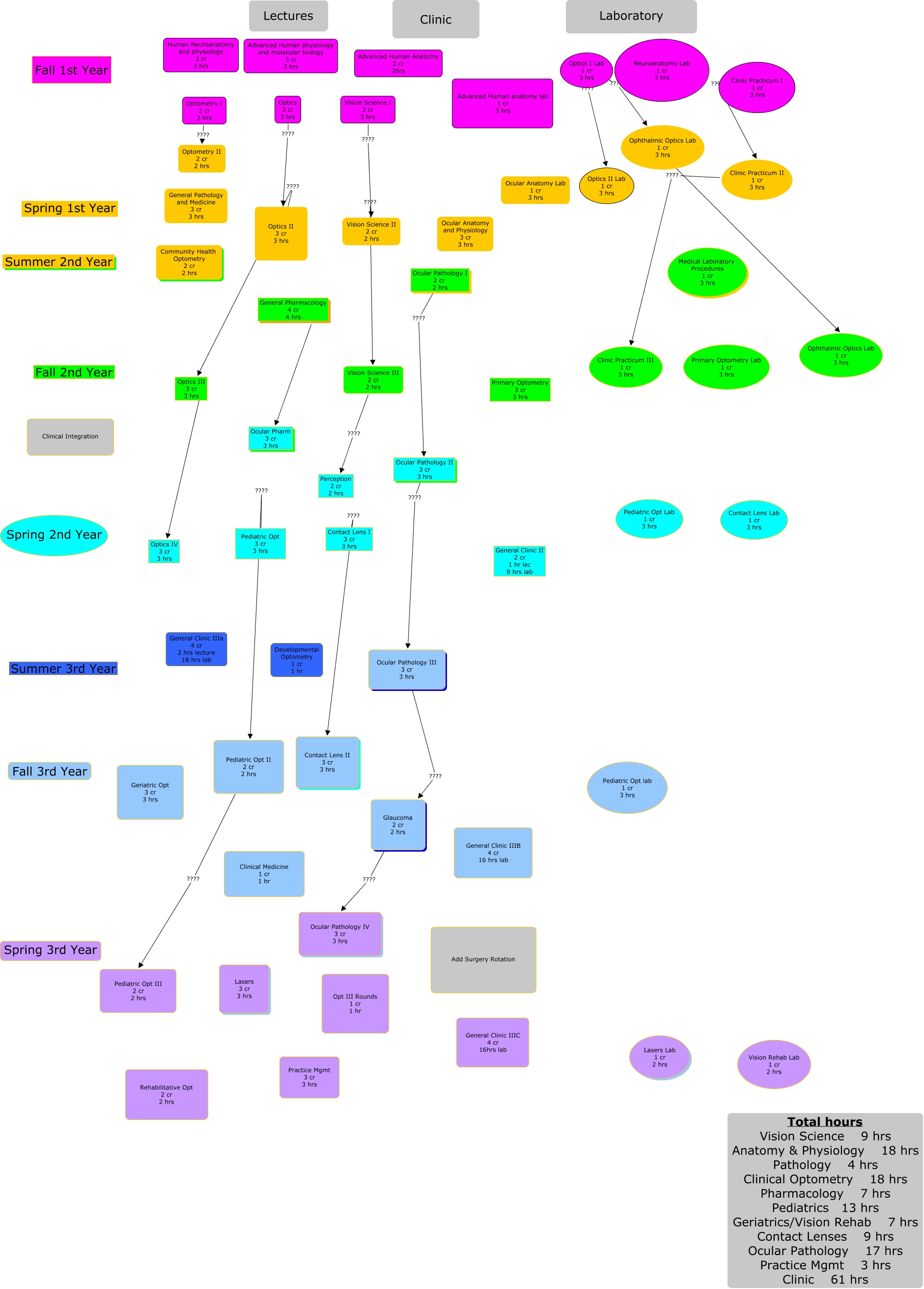 This Concept Map, created with IHMC CmapTools, has information related to: 8.16.13, Clinic Practicum I 1 cr 3 hrs ???? Clinic Practicum II 1 cr 3 hrs, Ocular Pathology II 3 cr 3 hrs ???? Ocular Pathology III 3 cr 3 hrs, Pediatric Opt 3 cr 3 hrs ???? Pediatric Opt II 2 cr 2 hrs, Optics I Lab 1 cr 3 hrs ???? Ophthalmic Optics Lab 1 cr 3 hrs, Optics I Lab 1 cr 3 hrs ???? Optics II Lab 1 cr 3 hrs, Ophthalmic Optics Lab 1 cr 3 hrs ???? Ophthalmic Optics Lab 1 cr 3 hrs, Optics 3 cr 3 hrs ???? Optics II 3 cr 3 hrs, Glaucoma 2 cr 2 hrs ???? Ocular Pathology IV 3 cr 3 hrs, Vision Science I 3 cr 3 hrs ???? Vision Science II 2 cr 2 hrs, Pediatric Opt II 2 cr 2 hrs ???? Pediatric Opt III 2 cr 2 hrs, Contact Lens I 3 cr 3 hrs ???? Contact Lens II 3 cr 3 hrs, Optics II 3 cr 3 hrs ???? Optics III 3 cr 3 hrs, Optometry I 2 cr 2 hrs ???? Optometry II 2 cr 2 hrs, Vision Science II 2 cr 2 hrs ???? Vision Science III 2 cr 2 hrs, Vision Science III 2 cr 2 hrs ???? Perception 2 cr 2 hrs, Ocular Pathology III 3 cr 3 hrs ???? Glaucoma 2 cr 2 hrs, Optics III 3 cr 3 hrs ???? Optics IV 3 cr 3 hrs, Clinic Practicum II 1 cr 3 hrs ???? Clinic Practicum III 1 cr 3 hrs, Ocular Pathology I 2 cr 2 hrs ???? Ocular Pathology II 3 cr 3 hrs, General Pharmacology 4 cr 4 hrs ???? Ocular Pharm 3 cr 3 hrs