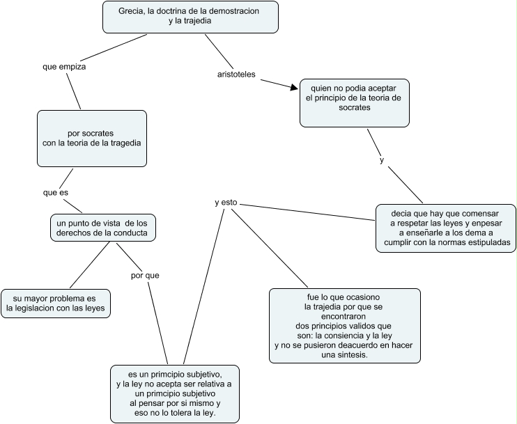 Este Cmap, tiene información relacionada con: Sin Título 1, decia que hay que comensar a respetar las leyes y enpesar a enseñarle a los dema a cumplir con la normas estipuladas y esto fue lo que ocasiono la trajedia por que se encontraron dos principios validos que son: la consiencia y la ley y no se pusieron deacuerdo en hacer una sintesis., Grecia, la doctrina de la demostracion y la trajedia que empiza por socrates con la teoria de la tragedia, Grecia, la doctrina de la demostracion y la trajedia aristoteles quien no podia aceptar el principio de la teoria de socrates, quien no podia aceptar el principio de la teoria de socrates y decia que hay que comensar a respetar las leyes y enpesar a enseñarle a los dema a cumplir con la normas estipuladas, por socrates con la teoria de la tragedia que es un punto de vista de los derechos de la conducta, un punto de vista de los derechos de la conducta por que es un primcipio subjetivo, y la ley no acepta ser relativa a un primcipio subjetivo al pensar por si mismo y eso no lo tolera la ley., es un primcipio subjetivo, y la ley no acepta ser relativa a un primcipio subjetivo al pensar por si mismo y eso no lo tolera la ley. y esto fue lo que ocasiono la trajedia por que se encontraron dos principios validos que son: la consiencia y la ley y no se pusieron deacuerdo en hacer una sintesis., un punto de vista de los derechos de la conducta y su mayor problema es la legislacion con las leyes