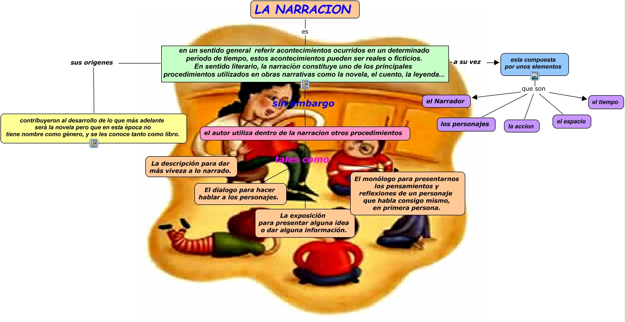 Este Cmap, tiene información relacionada con: UNIDAD 3. LA NARRACION, el autor utiliza dentro de la narracion otros procedimientos tales como La descripción para dar más viveza a lo narrado., el autor utiliza dentro de la narracion otros procedimientos tales como El dialogo para hacer hablar a los personajes., esta compuesta por unos elementos que son la accion, esta compuesta por unos elementos que son los personajes, en un sentido general referir acontecimientos ocurridos en un determinado período de tiempo, estos acontecimientos pueden ser reales o ficticios. En sentido literario, la narración constituye uno de los principales procedimientos utilizados en obras narrativas como la novela, el cuento, la leyenda... a su vez esta compuesta por unos elementos, el autor utiliza dentro de la narracion otros procedimientos tales como El monólogo para presentarnos los pensamientos y reflexiones de un personaje que habla consigo mismo, en primera persona., el autor utiliza dentro de la narracion otros procedimientos tales como La exposición para presentar alguna idea o dar alguna información., LA NARRACION es en un sentido general referir acontecimientos ocurridos en un determinado período de tiempo, estos acontecimientos pueden ser reales o ficticios. En sentido literario, la narración constituye uno de los principales procedimientos utilizados en obras narrativas como la novela, el cuento, la leyenda..., esta compuesta por unos elementos que son el Narrador, esta compuesta por unos elementos que son el espacio, en un sentido general referir acontecimientos ocurridos en un determinado período de tiempo, estos acontecimientos pueden ser reales o ficticios. En sentido literario, la narración constituye uno de los principales procedimientos utilizados en obras narrativas como la novela, el cuento, la leyenda... sin embargo el autor utiliza dentro de la narracion otros procedimientos, en un sentido general referir acontecimientos ocurridos en un determinado período de tiempo, estos acontecimientos pueden ser reales o ficticios. En sentido literario, la narración constituye uno de los principales procedimientos utilizados en obras narrativas como la novela, el cuento, la leyenda... sus origenes contribuyeron al desarrollo de lo que más adelante será la novela pero que en esta época no tiene nombre como género, y se les conoce tanto como libro., esta compuesta por unos elementos que son el tiempo