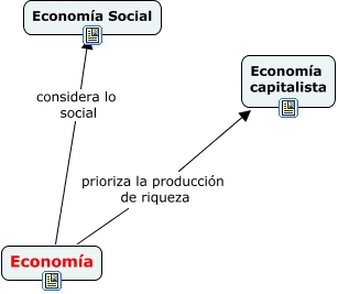 Este Cmap, tiene información relacionada con: Mapa conceptual Economía, Economía prioriza la producción de riqueza Economía capitalista, Economía considera lo social Economía Social