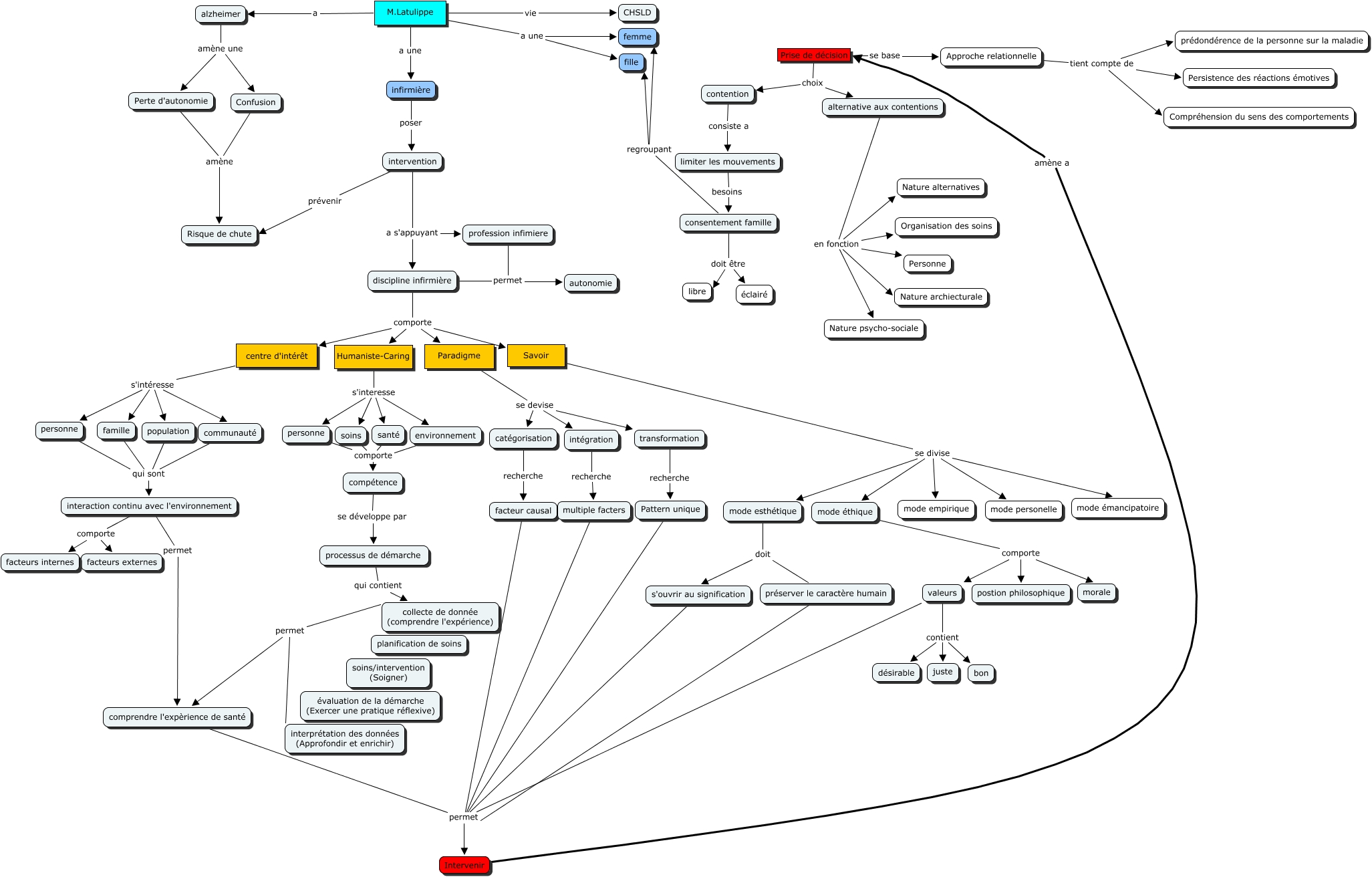 Cette carte de concepts créée avec IHMC CmapTools traite de: sic groupe 2.1.cmap, intégration recherche multiple facters, population qui sont interaction continu avec l'environnement, Paradigme se devise intégration, s'ouvrir au signification permet Intervenir, soins comporte compétence, mode éthique comporte morale, Humaniste-Caring s'interesse santé, M.Latulippe vie CHSLD, Savoir se divise mode éthique, Approche relationnelle tient compte de prédondérence de la personne sur la maladie, Approche relationnelle tient compte de Persistence des réactions émotives, limiter les mouvements besoins consentement famille, centre d'intérêt s'intéresse communauté, environnement comporte compétence, Humaniste-Caring s'interesse environnement, intervention a s'appuyant discipline infirmière, consentement famille regroupant femme, profession infimiere permet autonomie, alternative aux contentions en fonction Nature psycho-sociale, processus de démarche qui contient collecte de donnée (comprendre l'expérience)